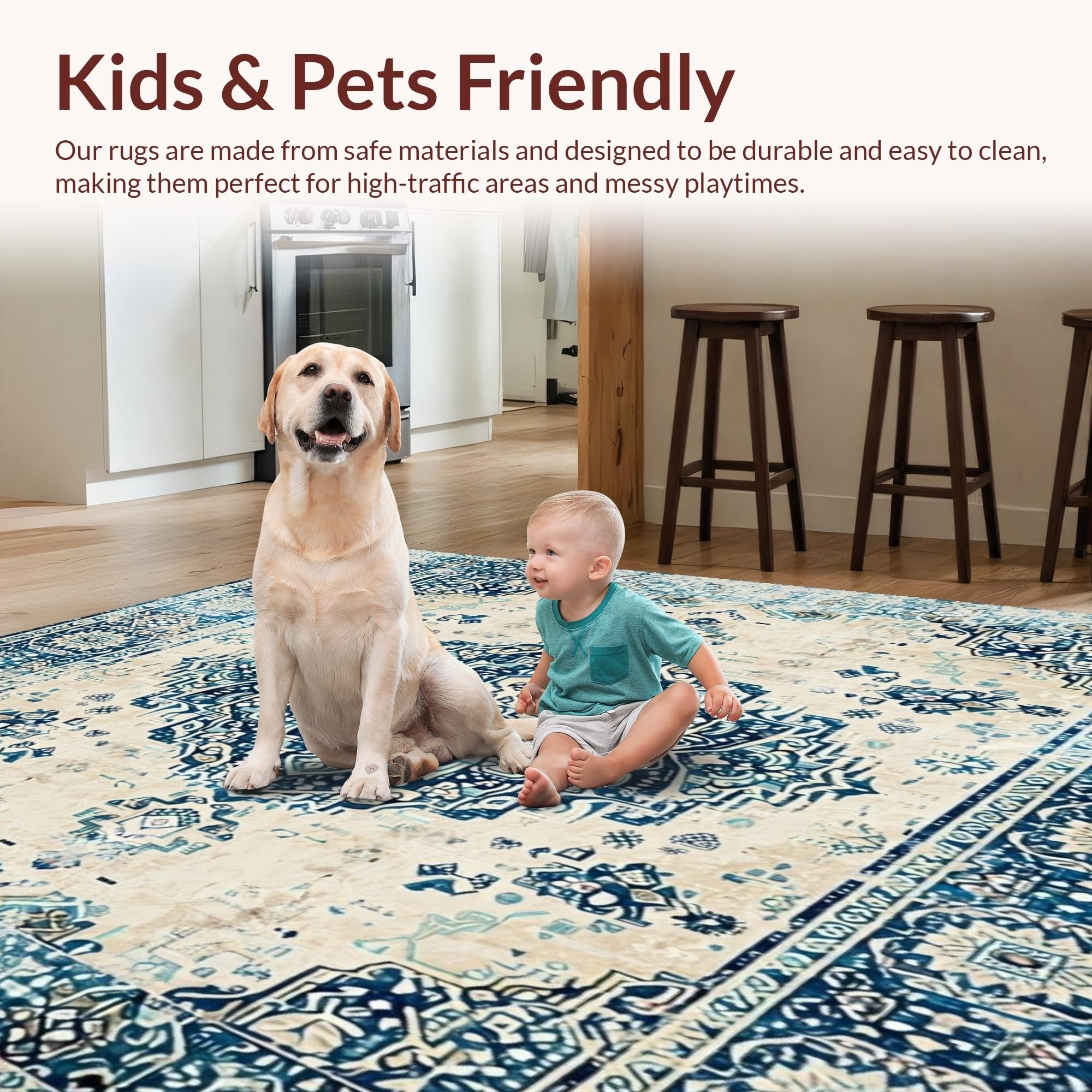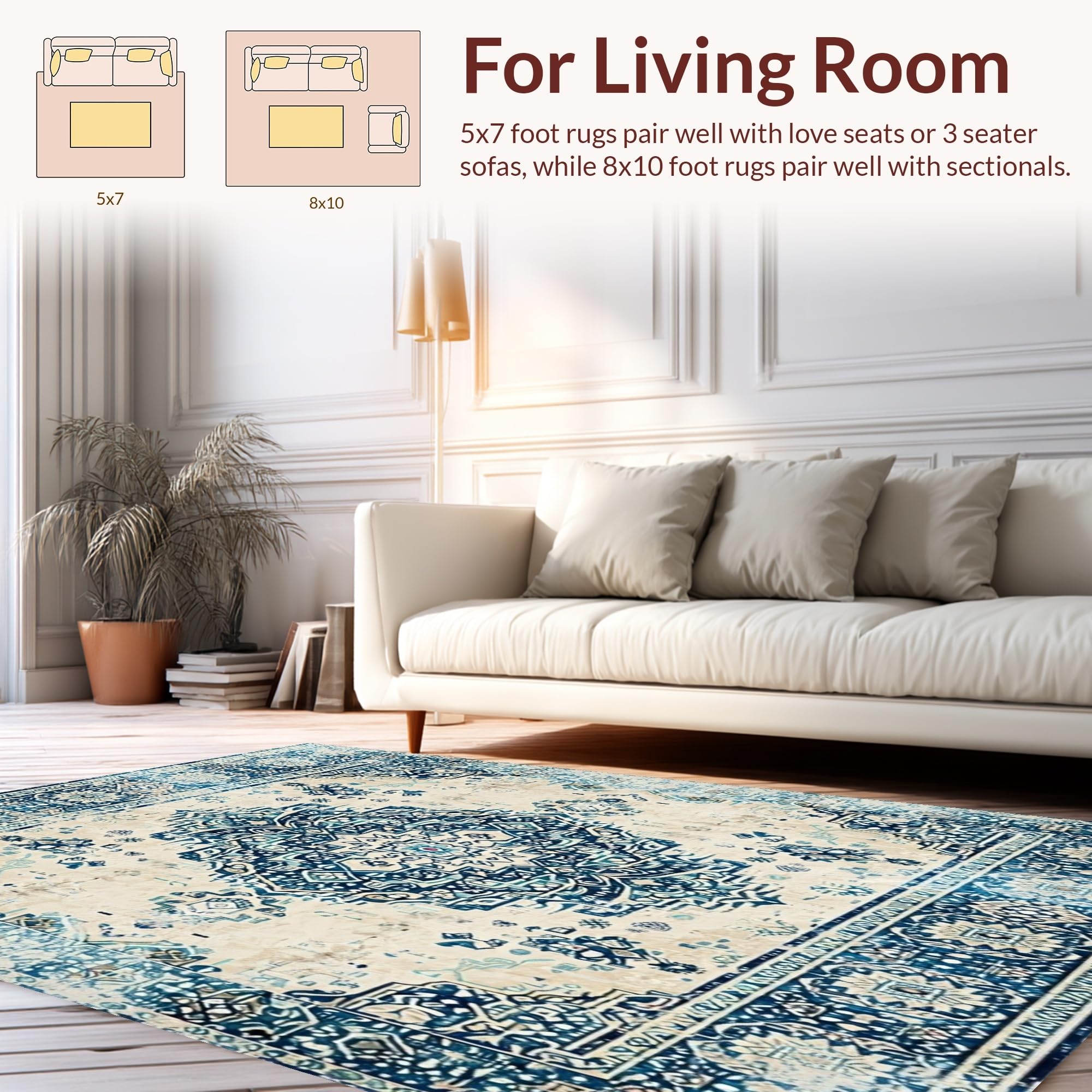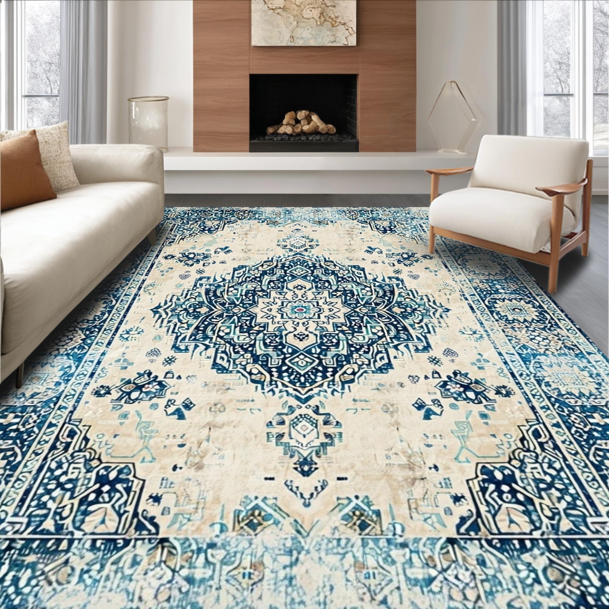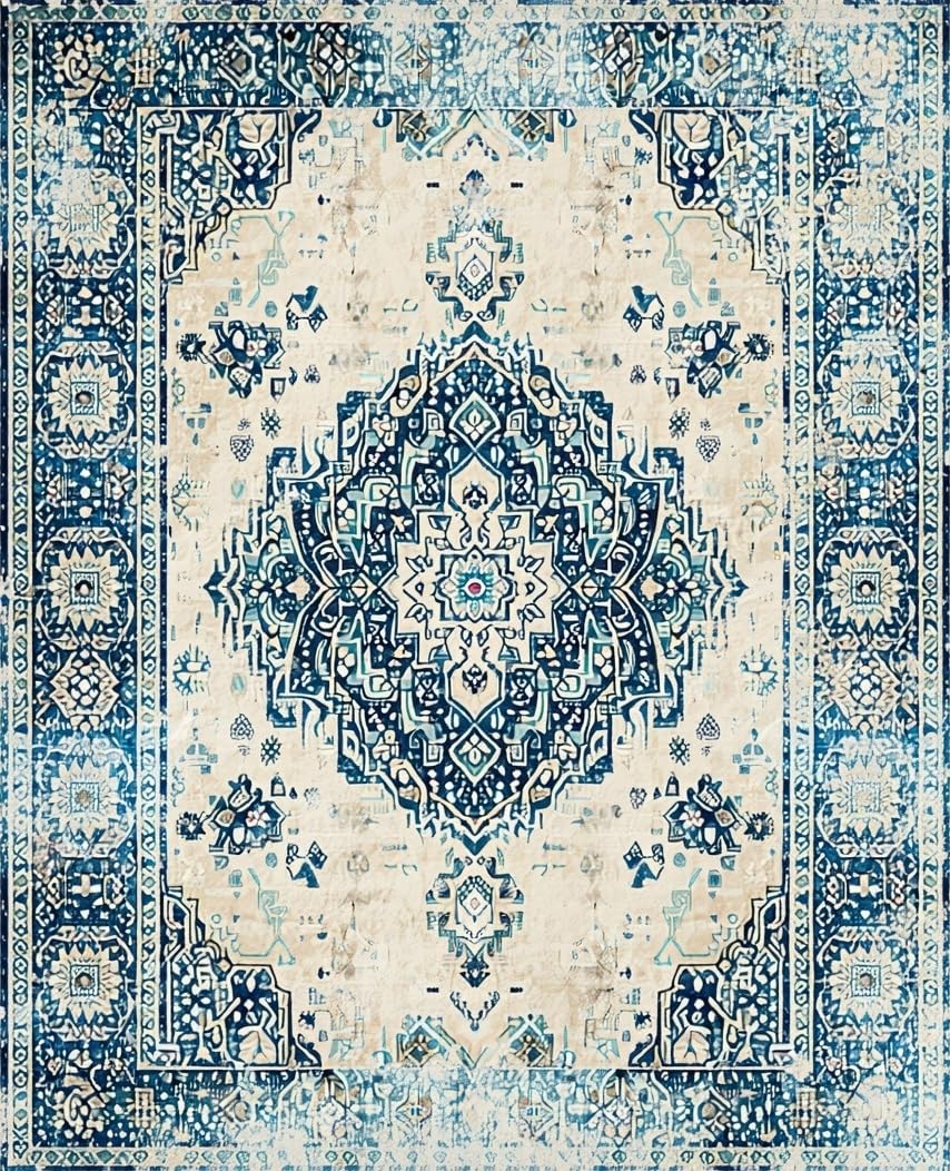 Ultra Soft Area Rug, Non Slip, Stain Resistant, Washable Area Rugs for Living Room, Bedroom, Timeless Artisan Area with Boho Inspired(Beige) Overview: