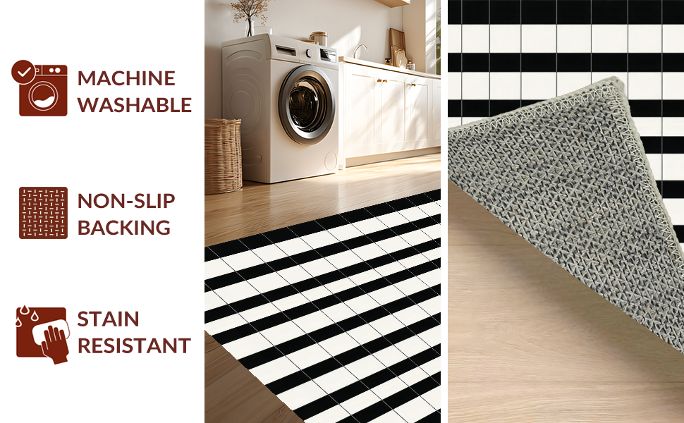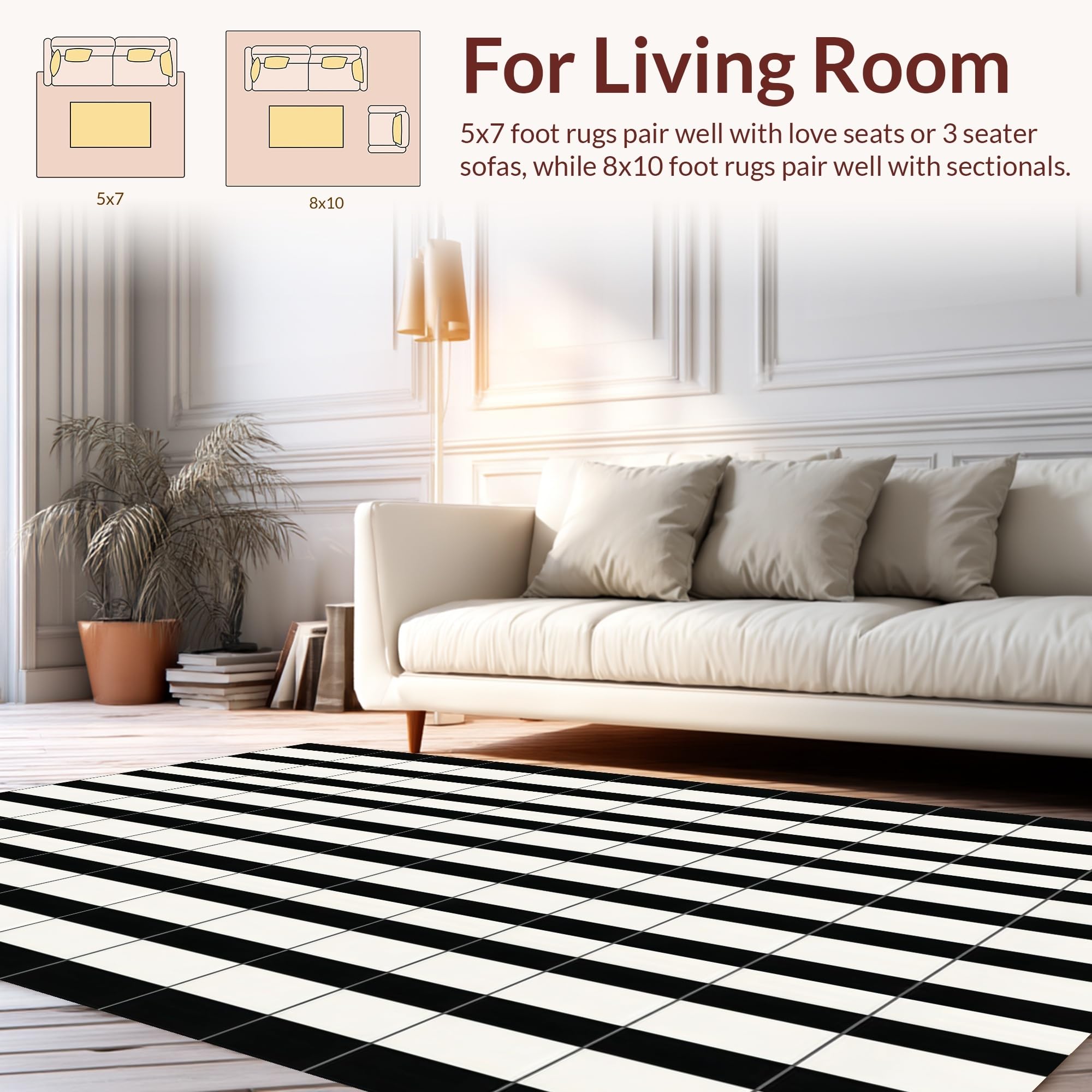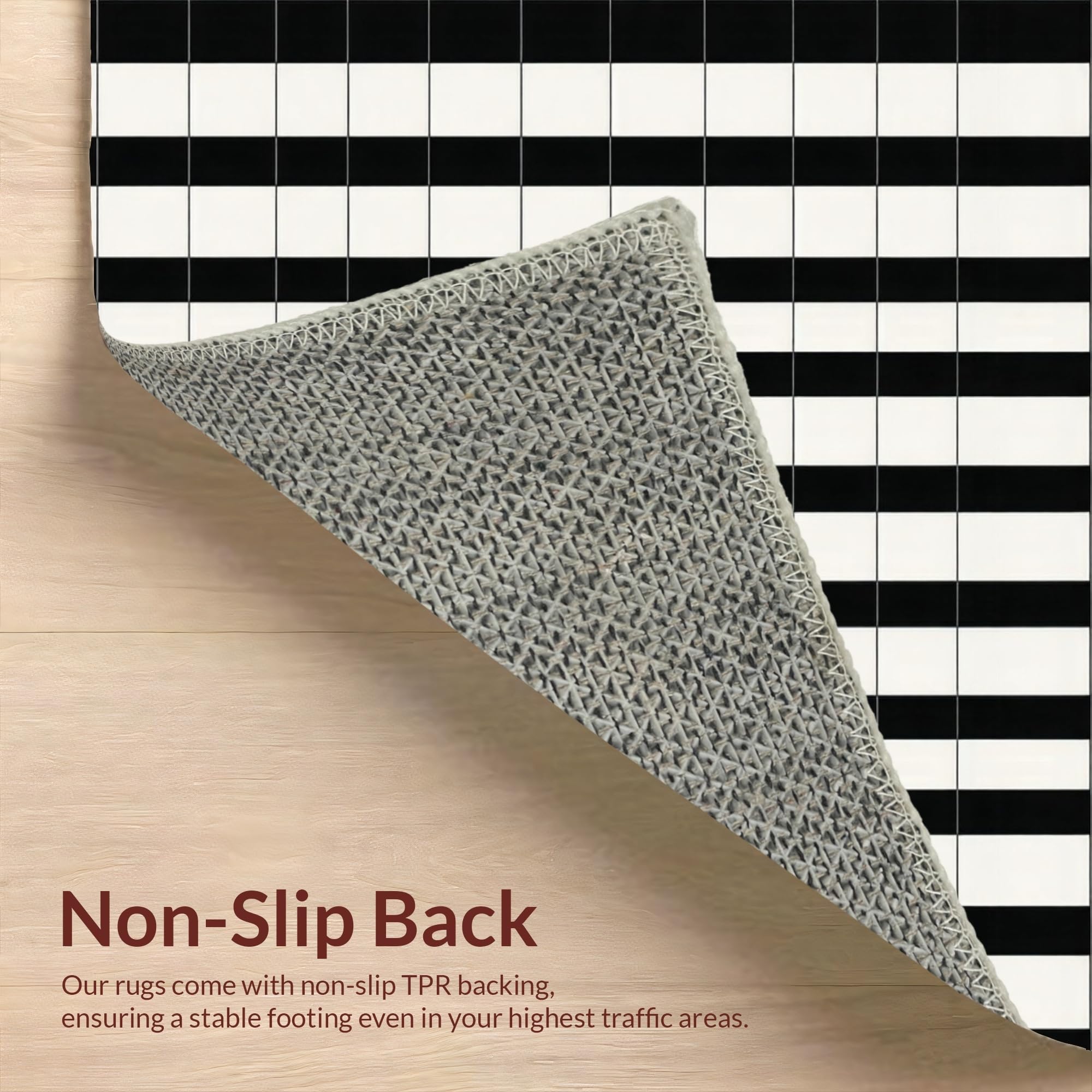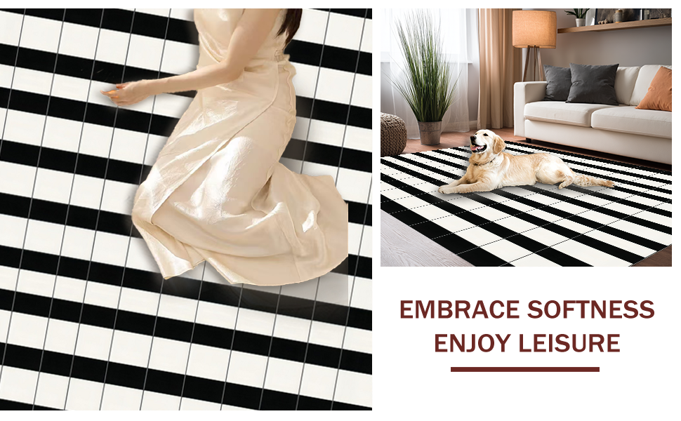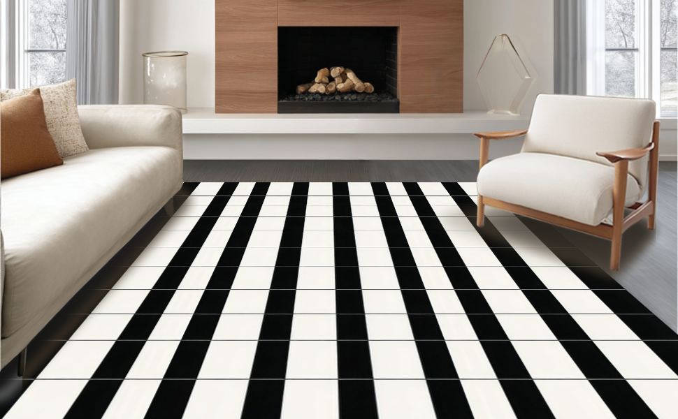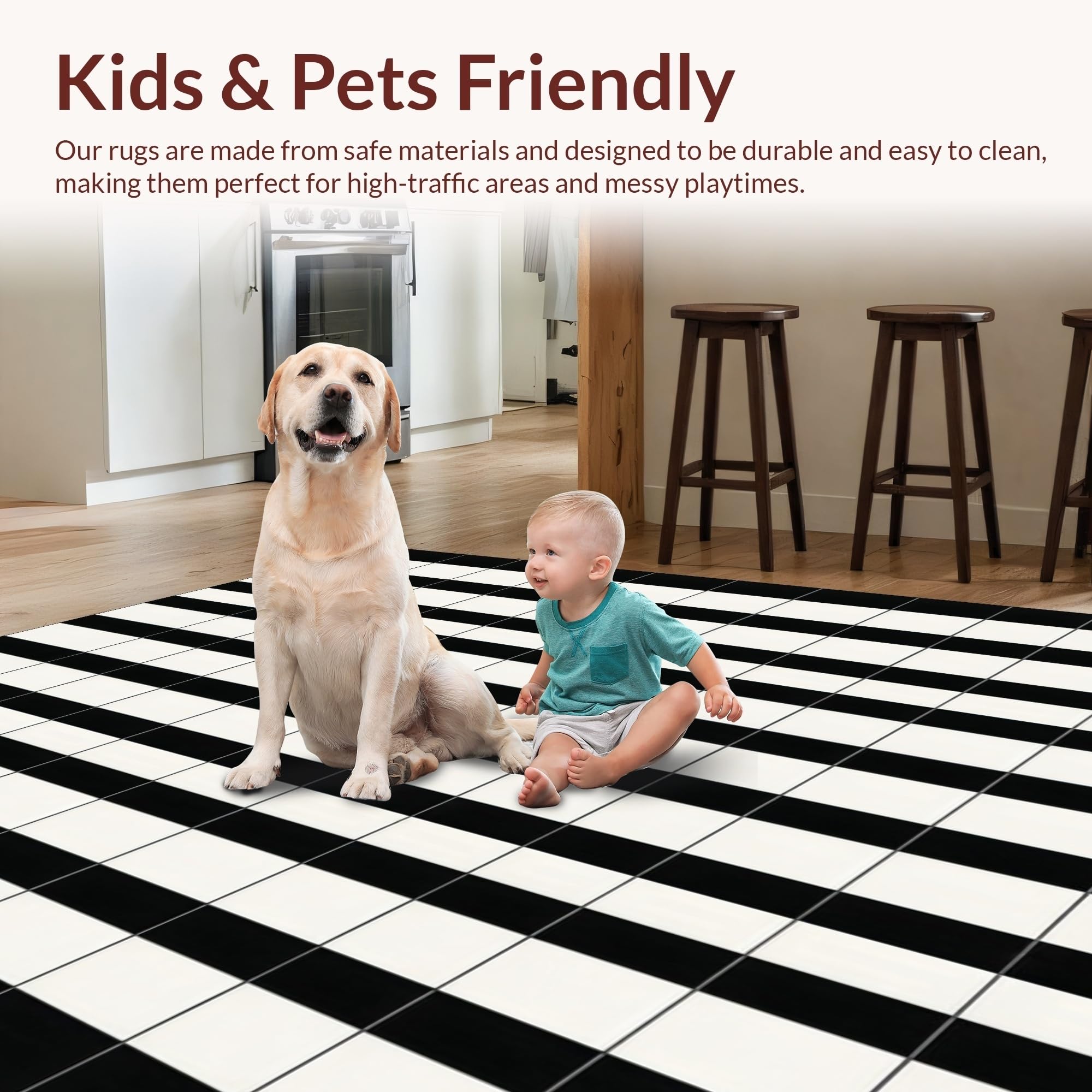 Ultra Soft Area Rug, Non Slip, Stain Resistant, Washable Area Rugs for Living Room, Bedroom, Timeless Black and White Diamond Layout(Black) Overview: