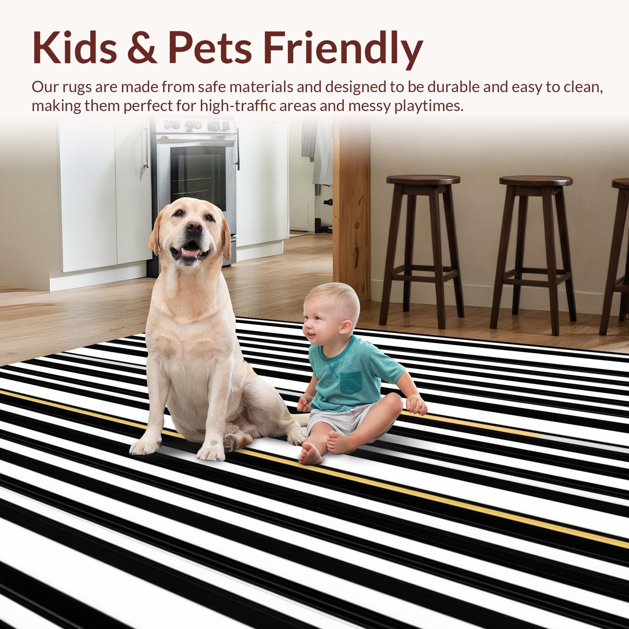 Ultra Soft Area Rug, Non Slip, Stain Resistant, Washable Area Rugs for Living Room, Bedroom, Timeless Black and White Stripes(Black) Overview: