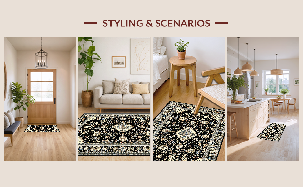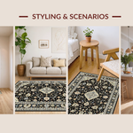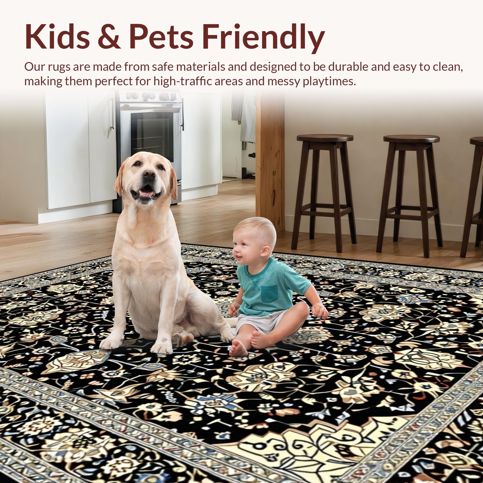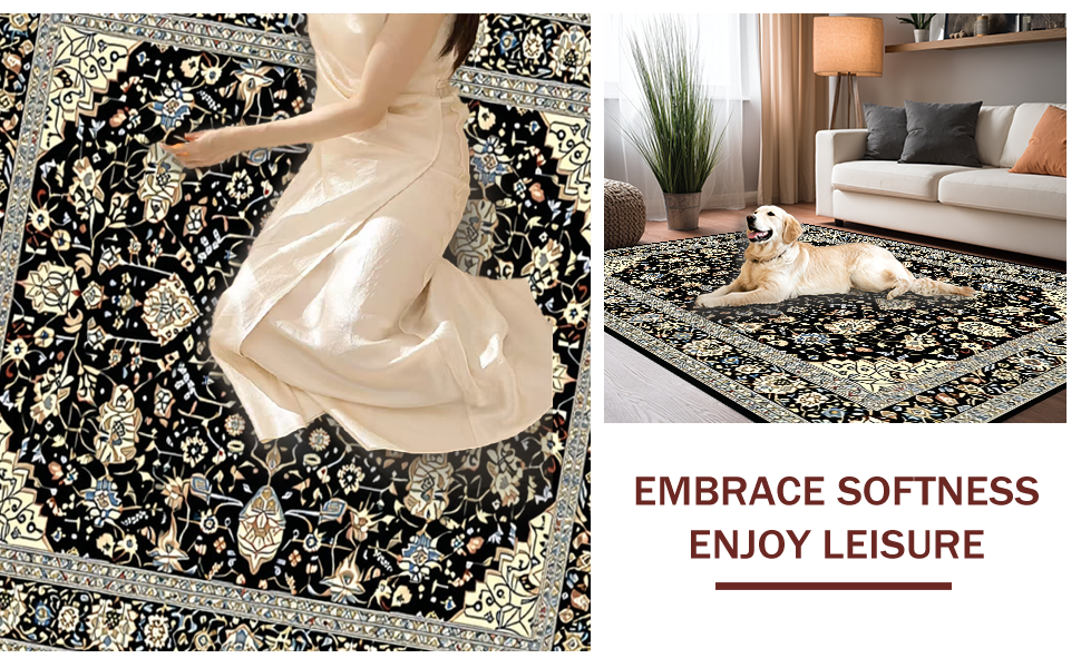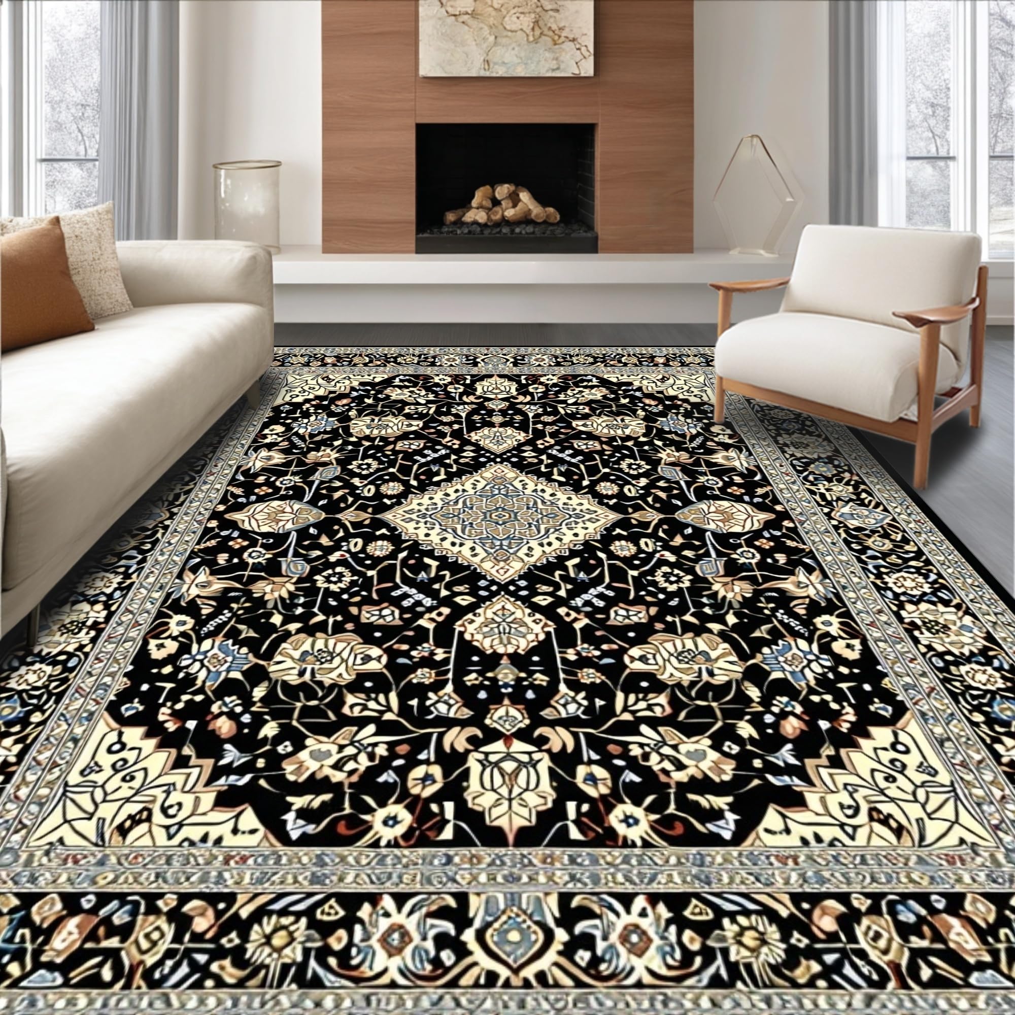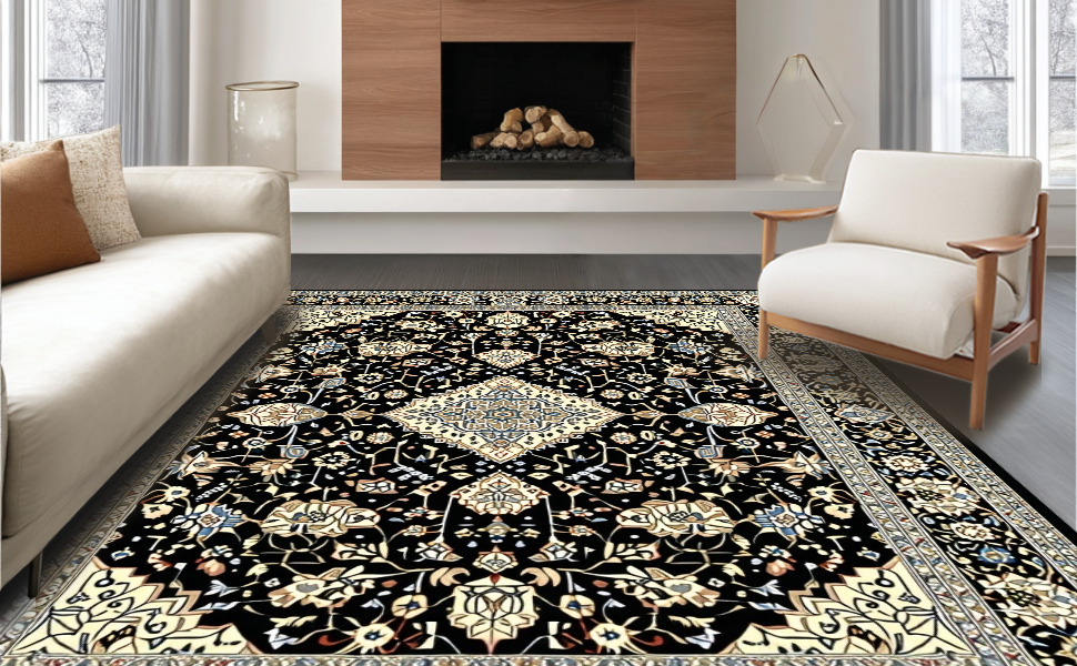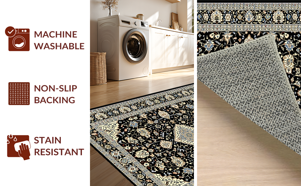 Ultra Soft Area Rug, Non Slip, Stain Resistant, Washable Area Rugs for Living Room, Bedroom, Timeless Black Beige Geometric Style(Black) Overview: