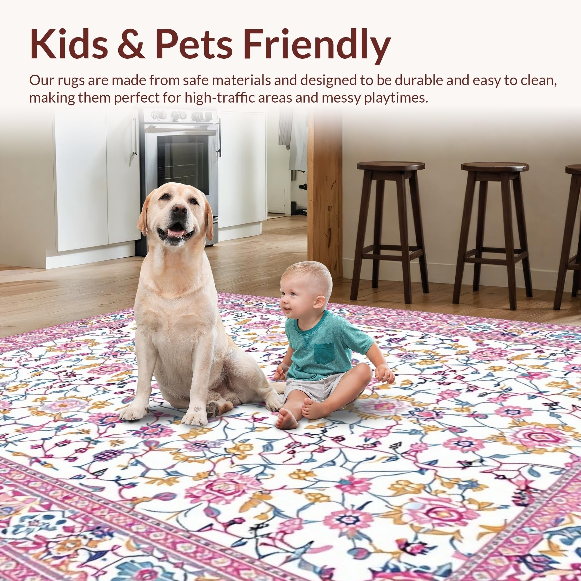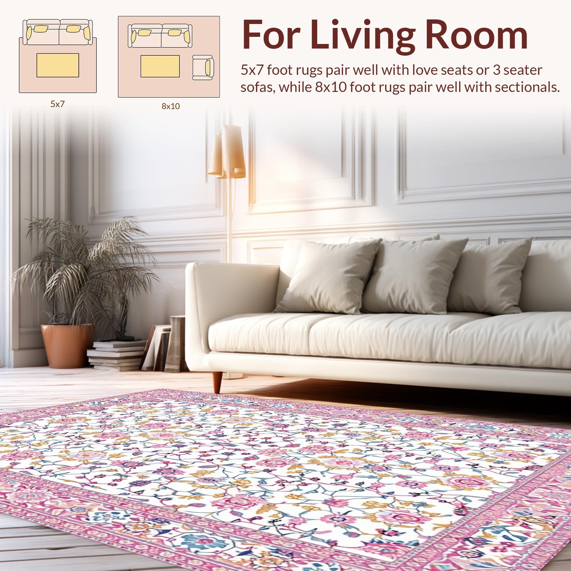 Ultra Soft Area Rug, Non Slip, Stain Resistant, Washable Area Rugs for Living Room, Bedroom, Timeless Classic Floral Elements(White) Overview: