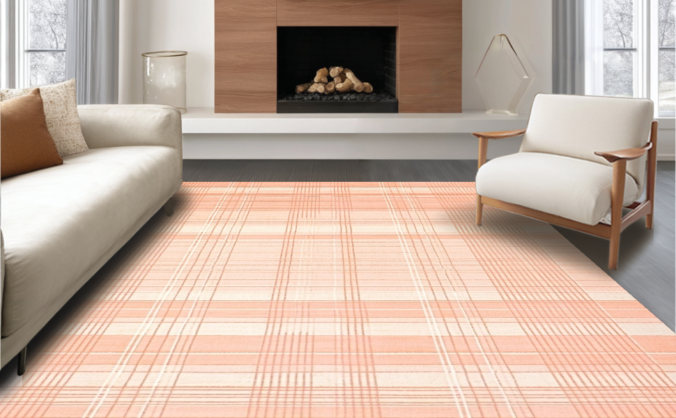 Ultra Soft Area Rug, Non Slip, Stain Resistant, Washable Area Rugs for Living Room, Bedroom, Timeless Cream and Peach Symmetry(Beige) Overview: