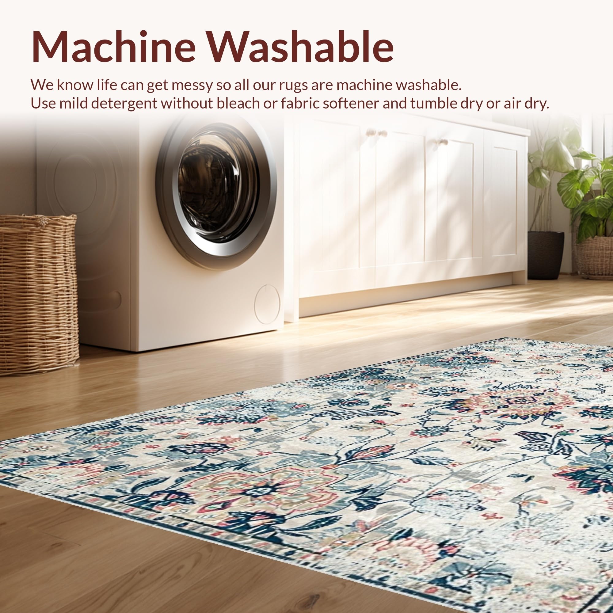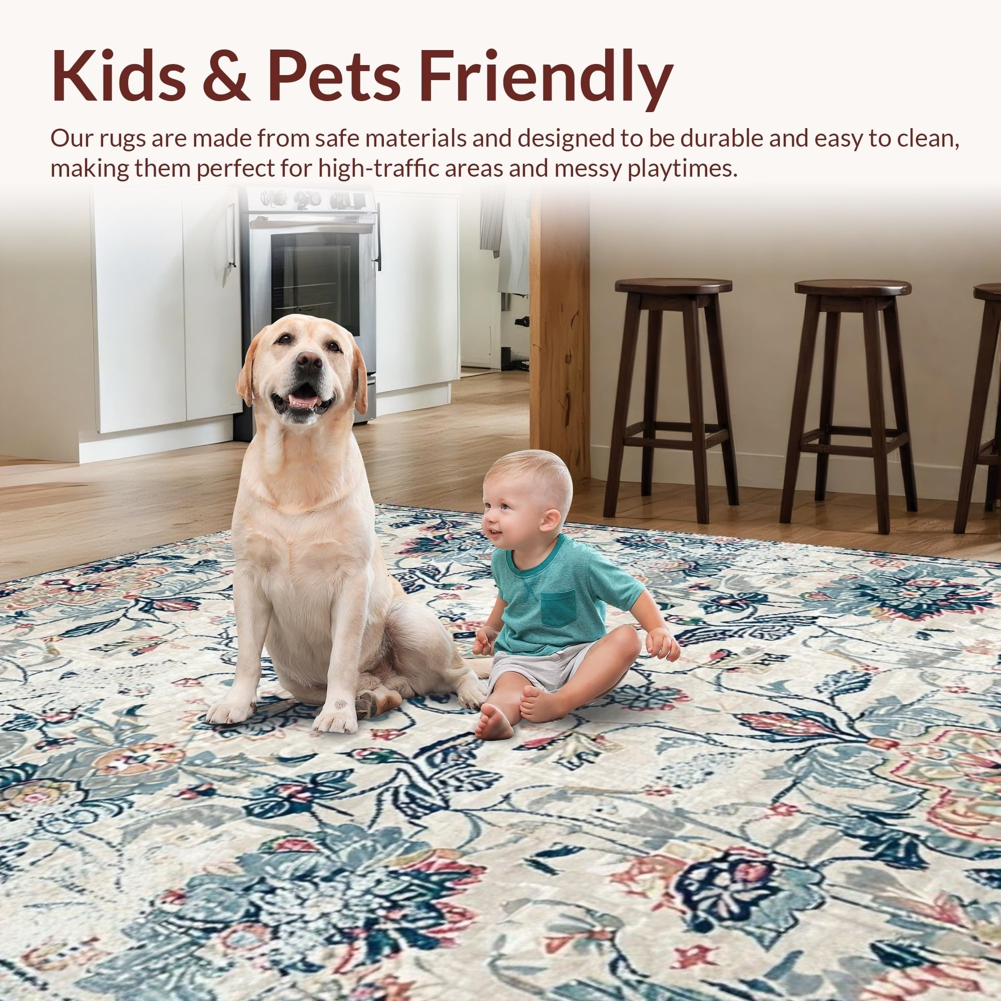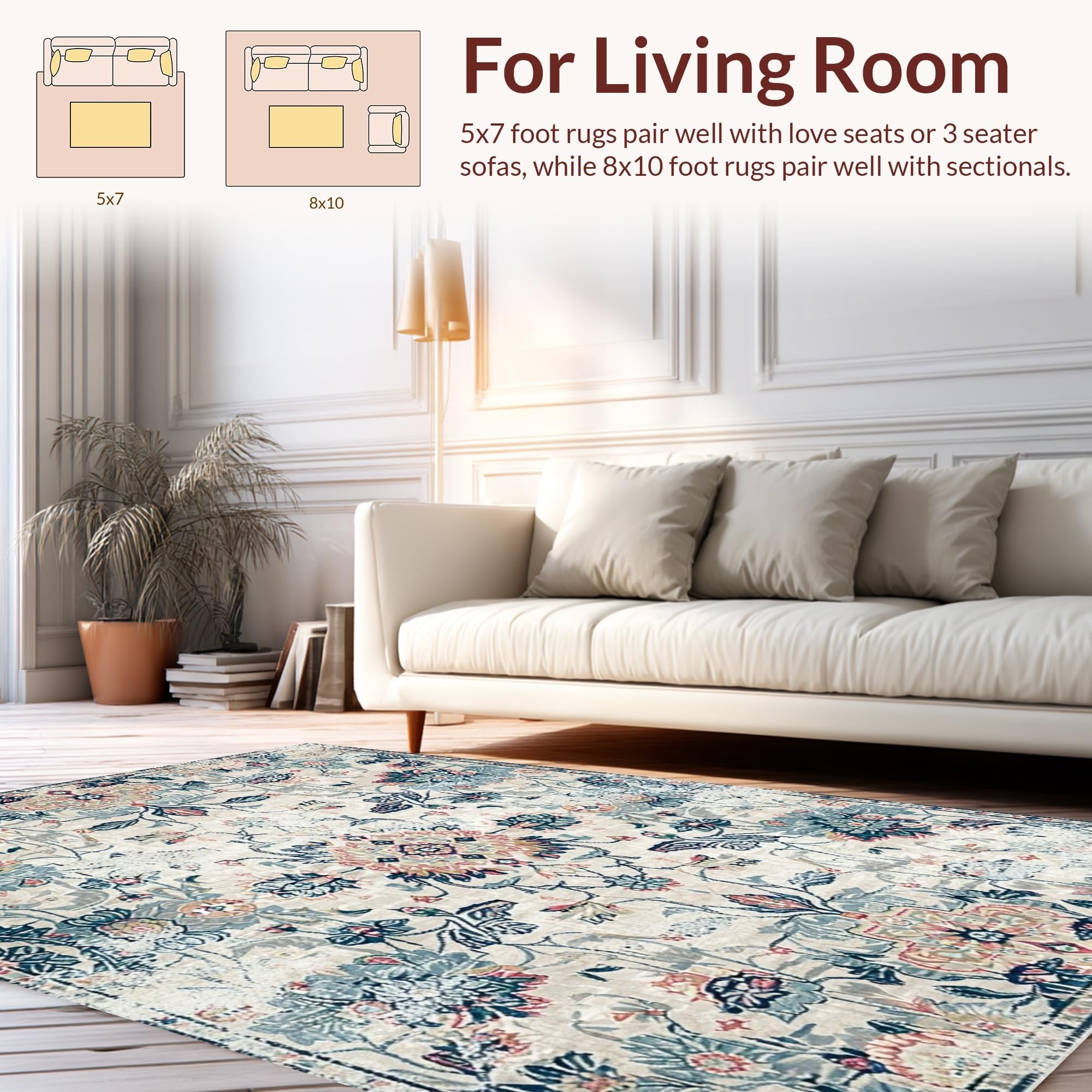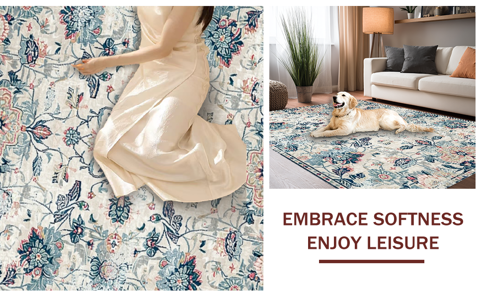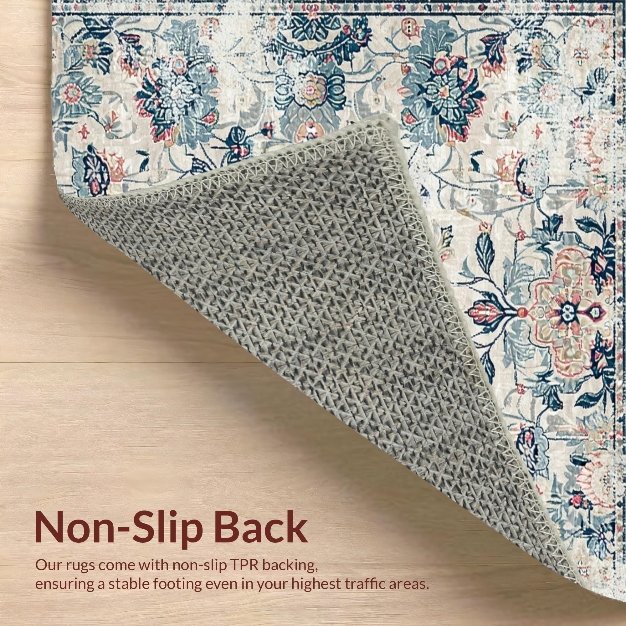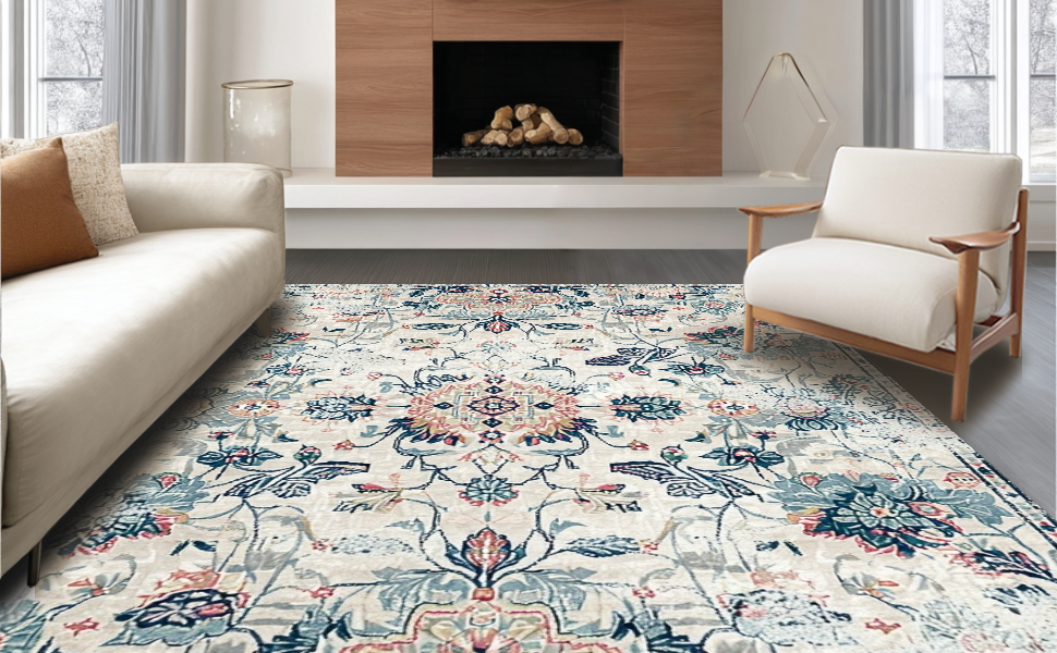 Ultra Soft Area Rug, Non Slip, Stain Resistant, Washable Area Rugs for Living Room, Bedroom, Timeless Elegant Flower Pattern(Ivory) Overview: