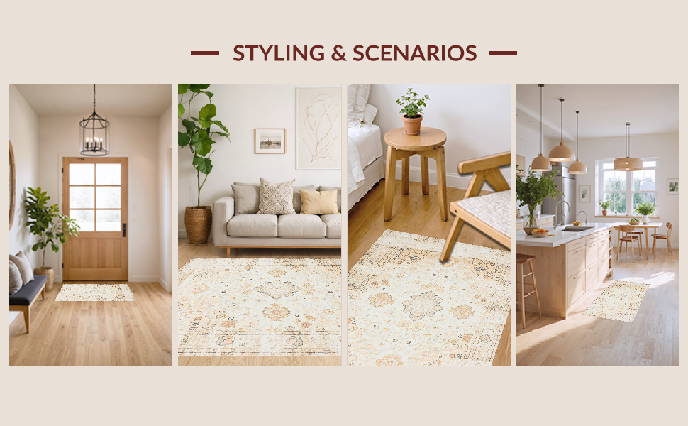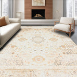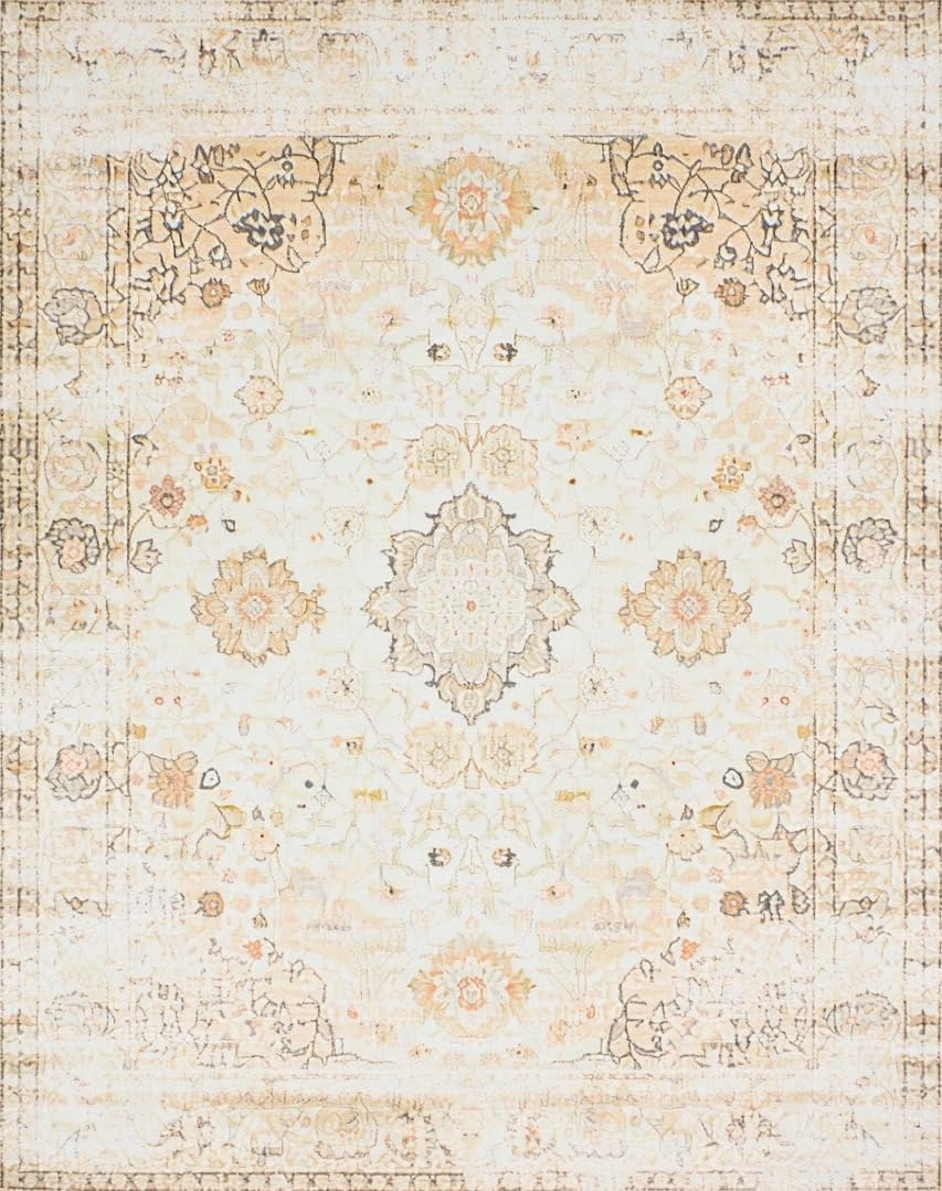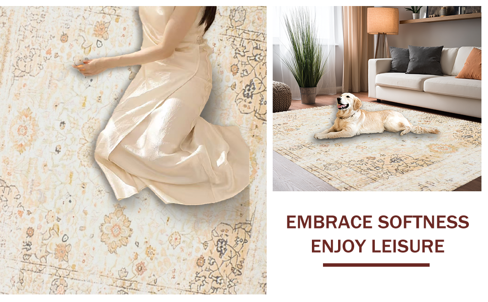 Ultra Soft Area Rug, Non Slip, Stain Resistant, Washable Area Rugs for Living Room, Bedroom, Timeless Intricate Petal Details(Beige) Overview: