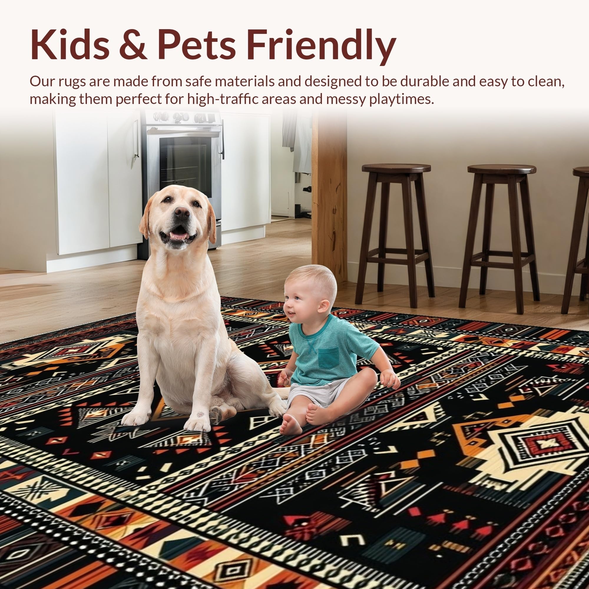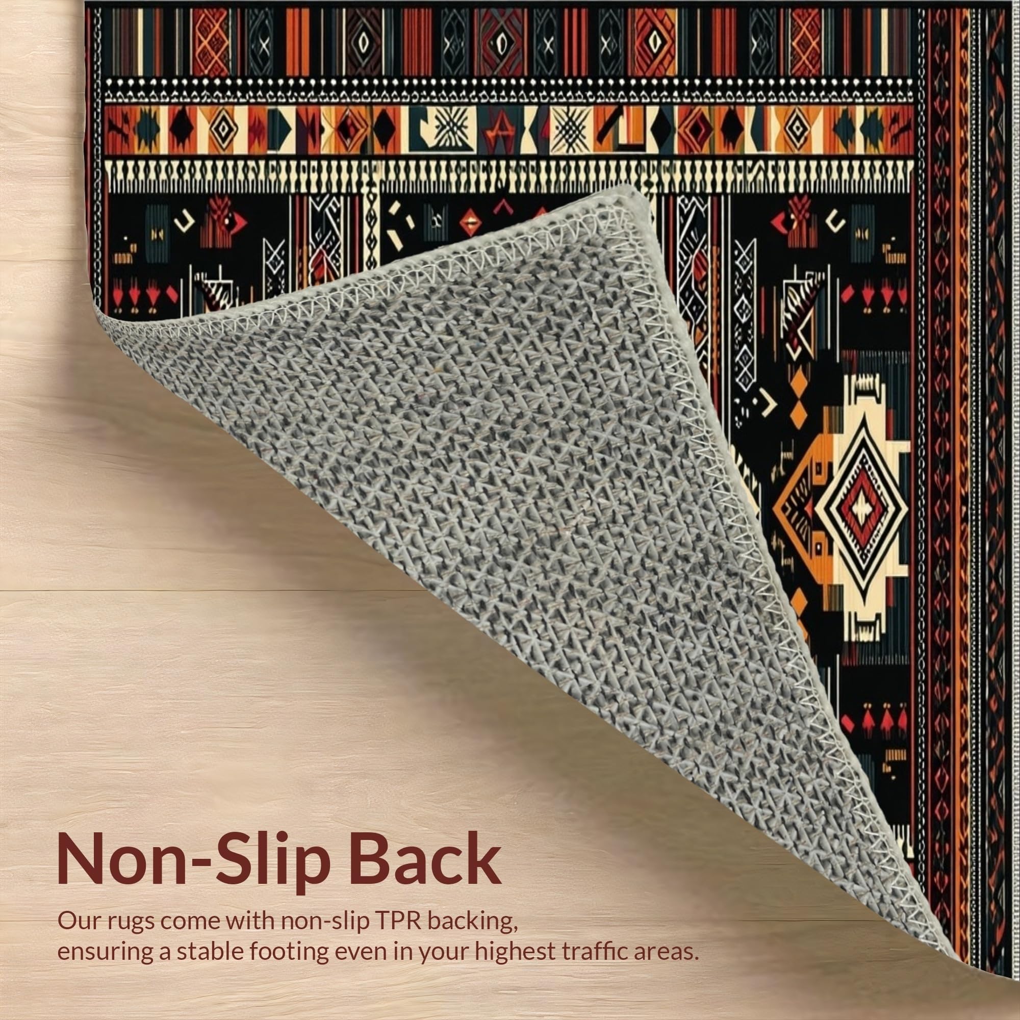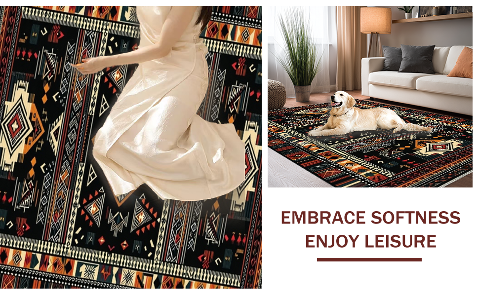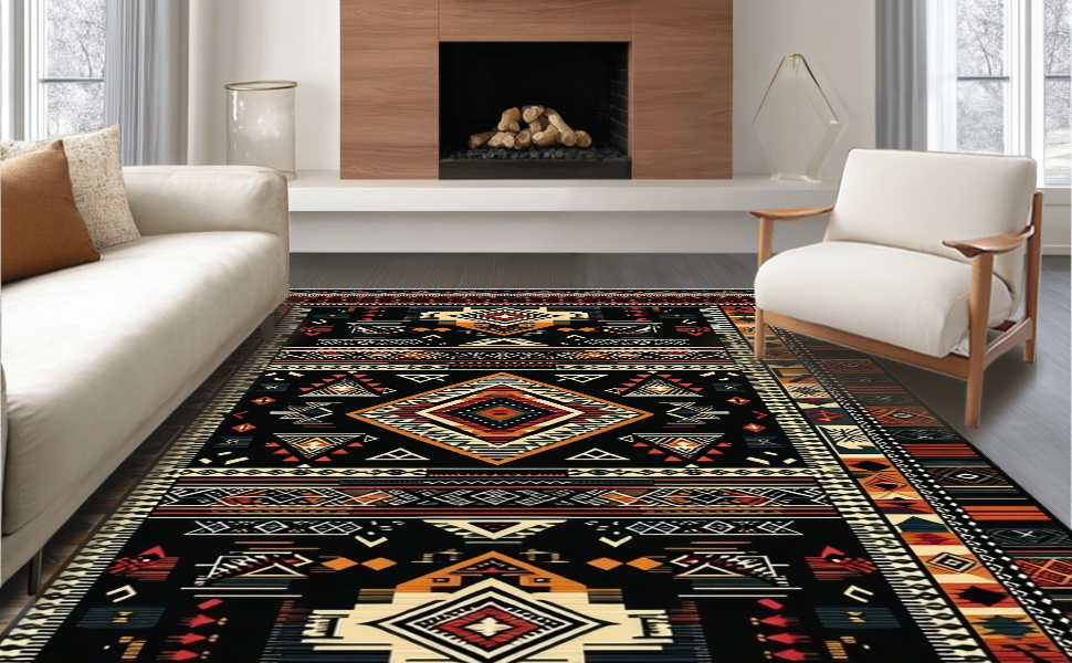 Ultra Soft Area Rug, Non Slip, Stain Resistant, Washable Area Rugs for Living Room, Bedroom, Timeless Lattice Pattern Design(Black) Overview: