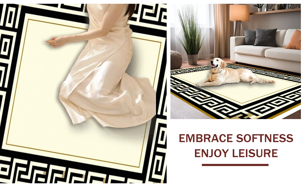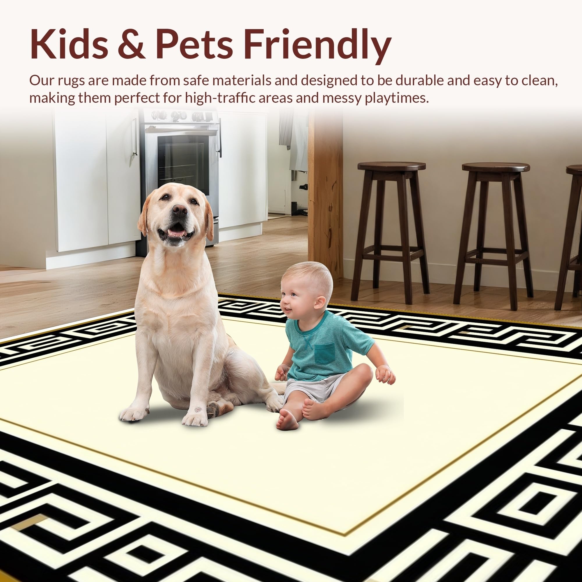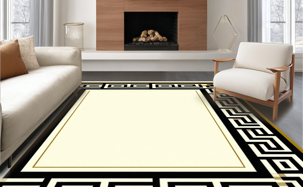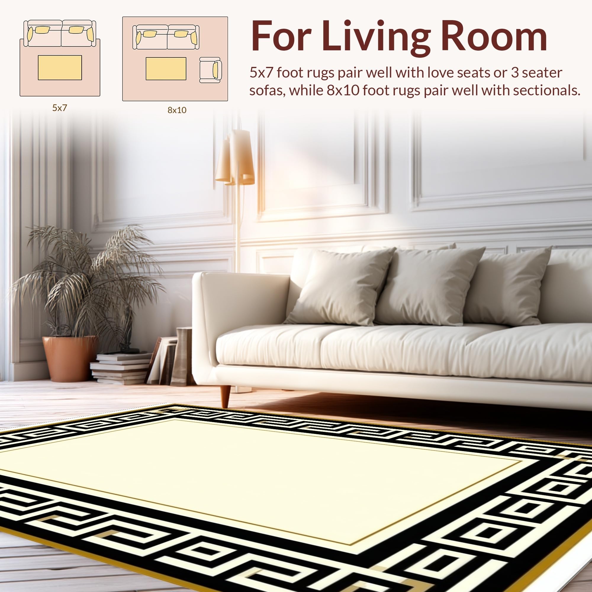 Ultra Soft Area Rug, Non Slip, Stain Resistant, Washable Area Rugs for Living Room, Bedroom, Timeless Minimalist Border Design(Beige) Overview:
