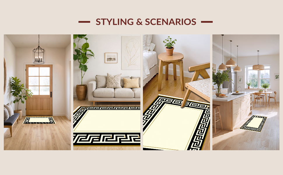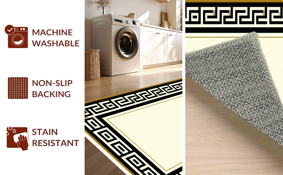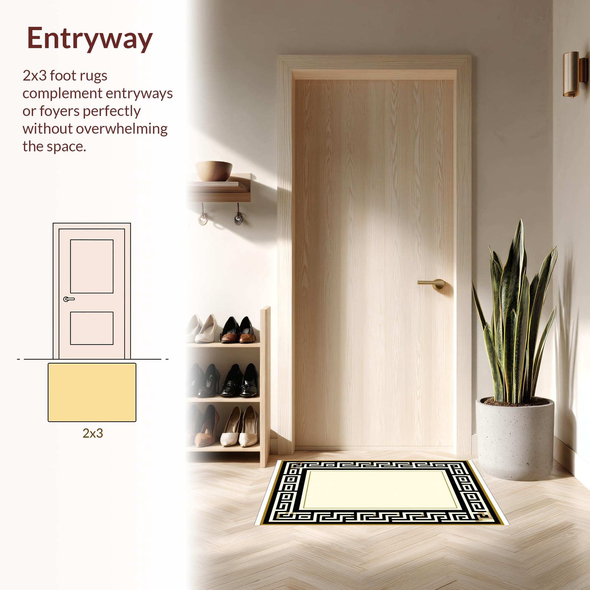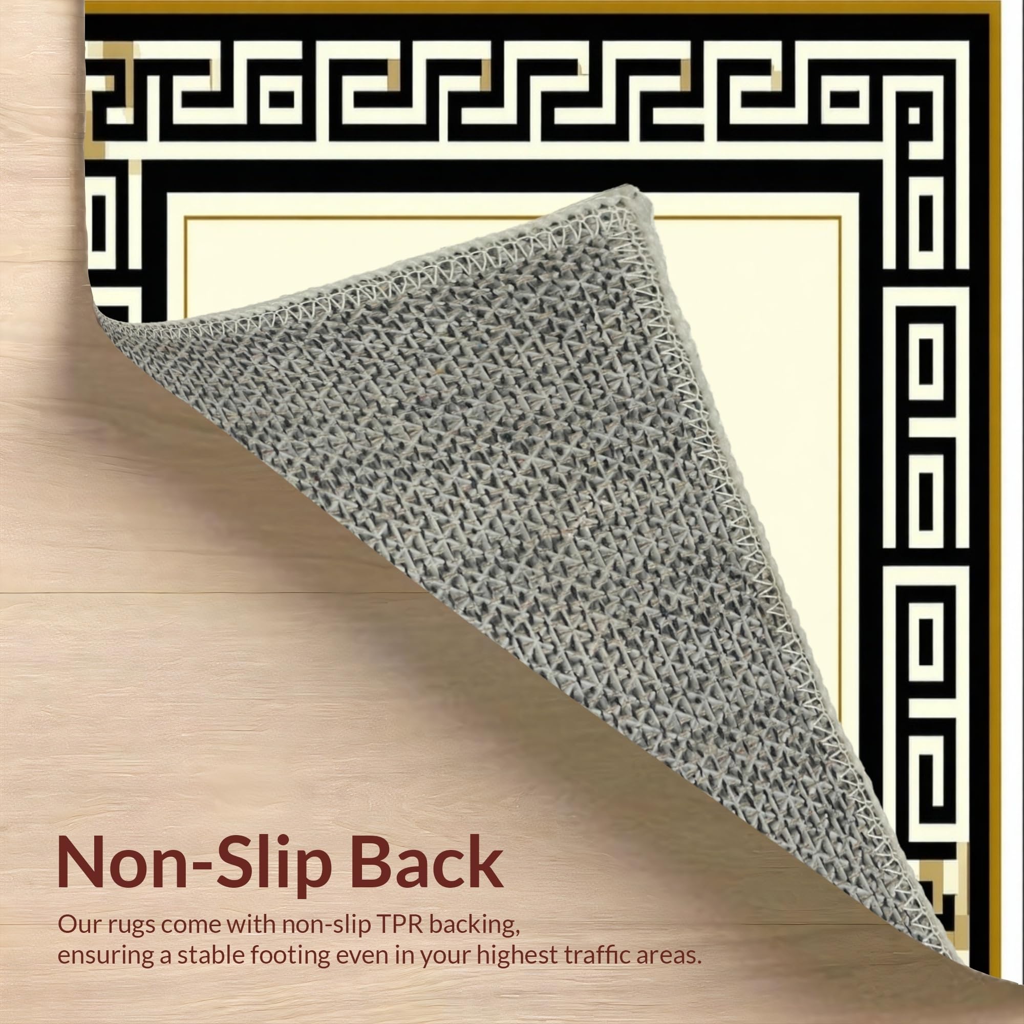 Ultra Soft Area Rug, Non Slip, Stain Resistant, Washable Area Rugs for Living Room, Bedroom, Timeless Minimalist Border Design(Beige) Overview:
