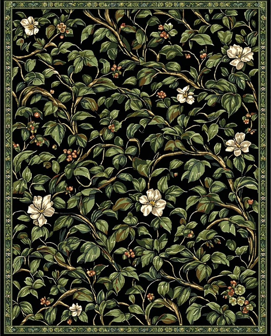 Flatwoven High Traffic Area Rug, Timeless Nature Inspired Print, Non Slip, Stain Resistant, Washable Area Rugs for Living Room, Bedroom (Black) Overview: