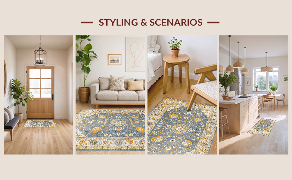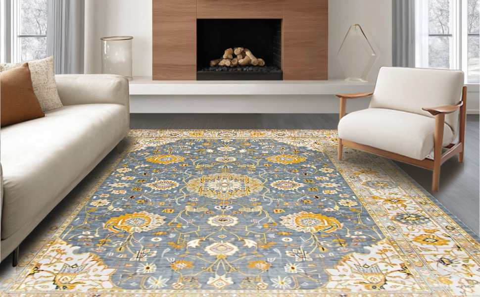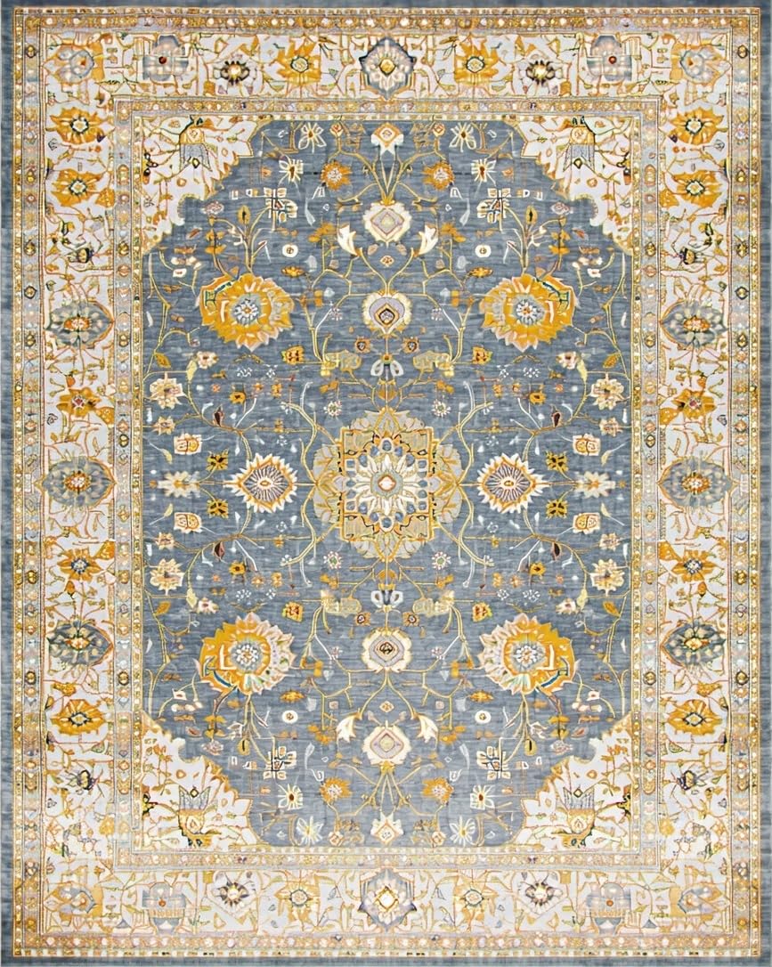 Ultra Soft Area Rug, Non Slip, Stain Resistant, Washable Area Rugs for Living Room, Bedroom, Timeless Neutral Vintage Damask Pattern(Gray) Overview: