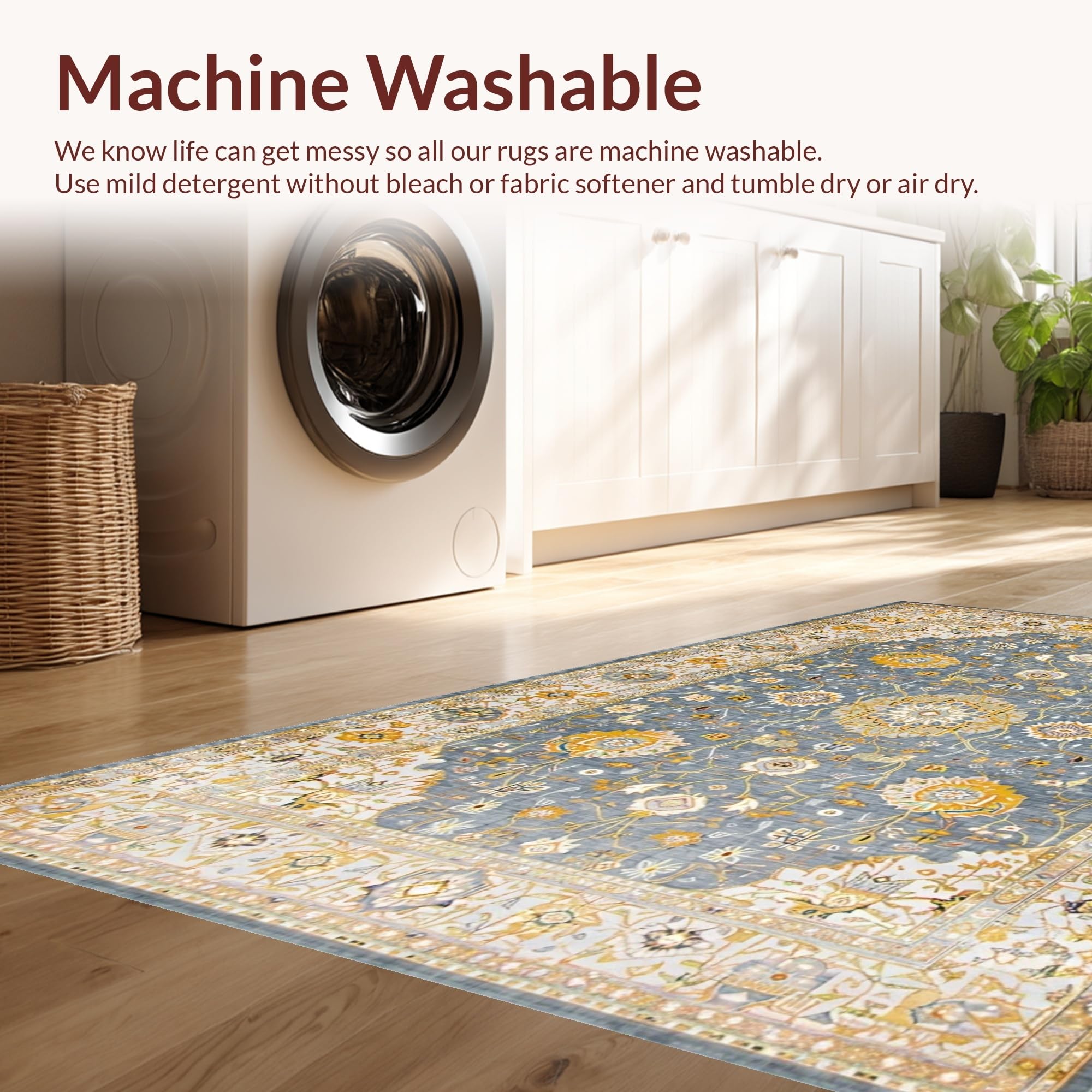 - Machine Washable: Our rugs can be easily thrown in the wash machine.