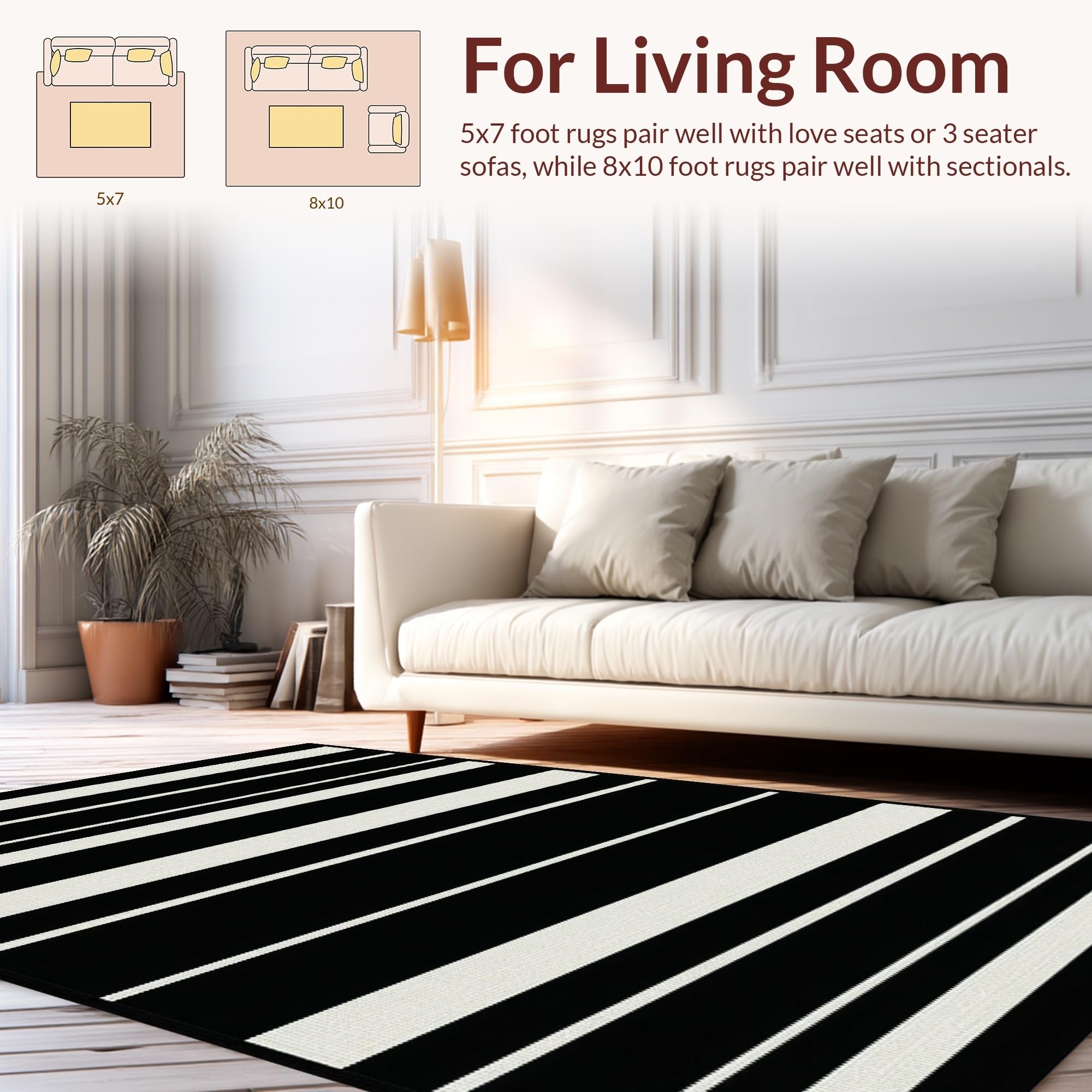 Ultra Soft Area Rug, Non Slip, Stain Resistant, Washable Area Rugs for Living Room, Bedroom, Timeless Ogee Patterned Charm(Black) Overview: