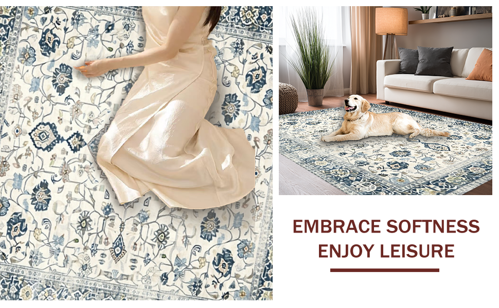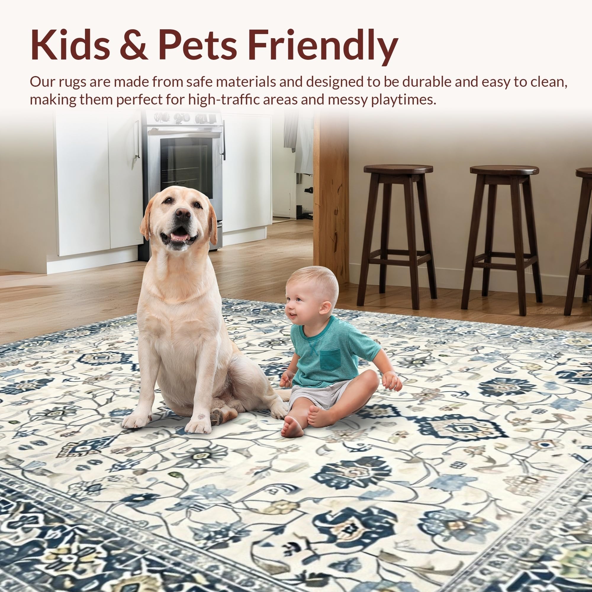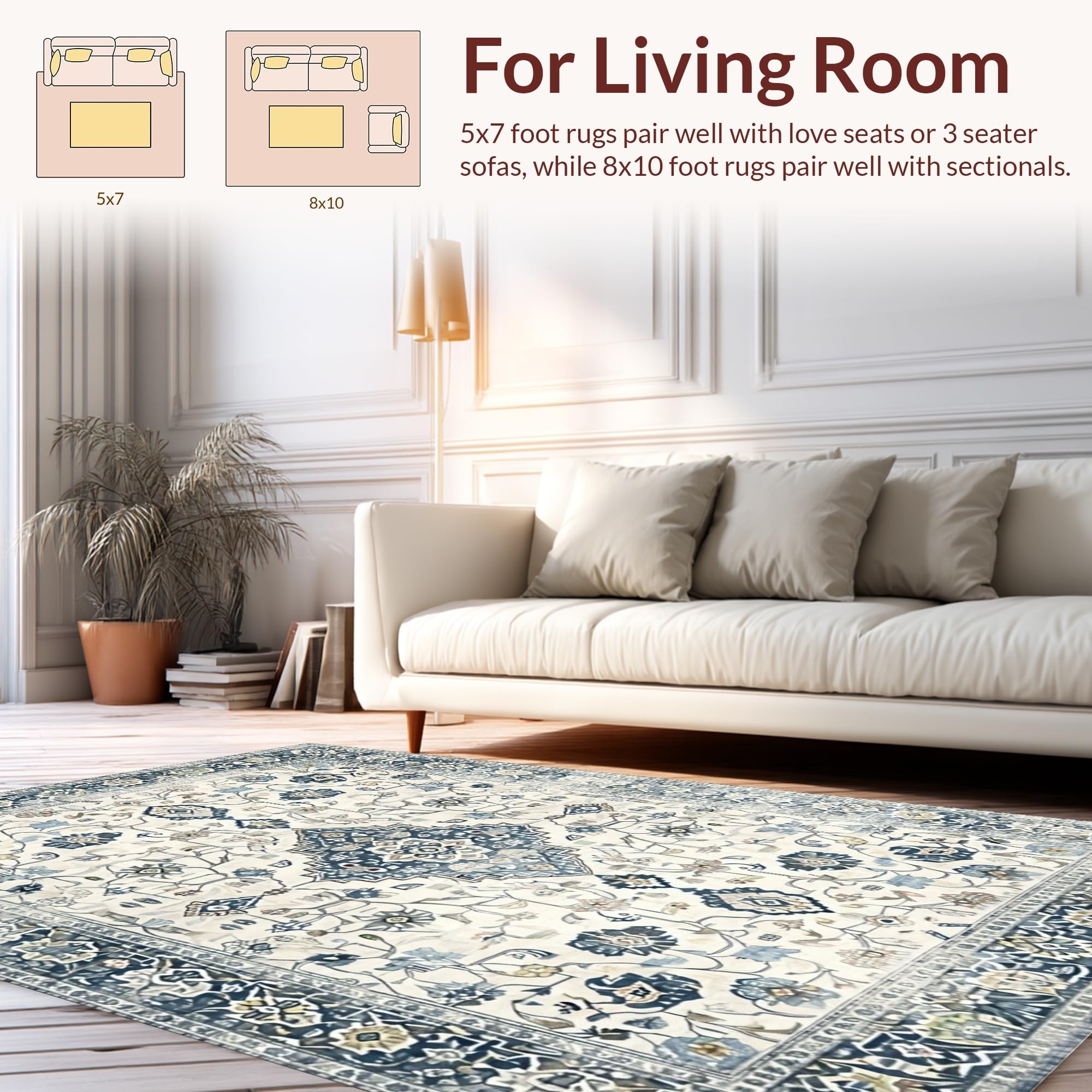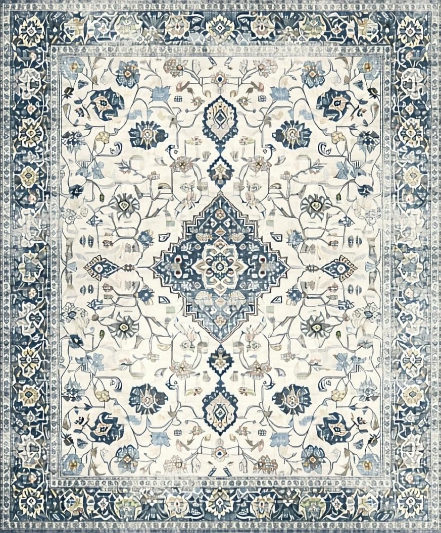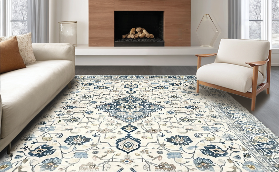 Ultra Soft Area Rug, Non Slip, Stain Resistant, Washable Area Rugs for Living Room, Bedroom, Timeless Overdyed Floral Aesthetic(Ivory) Overview: