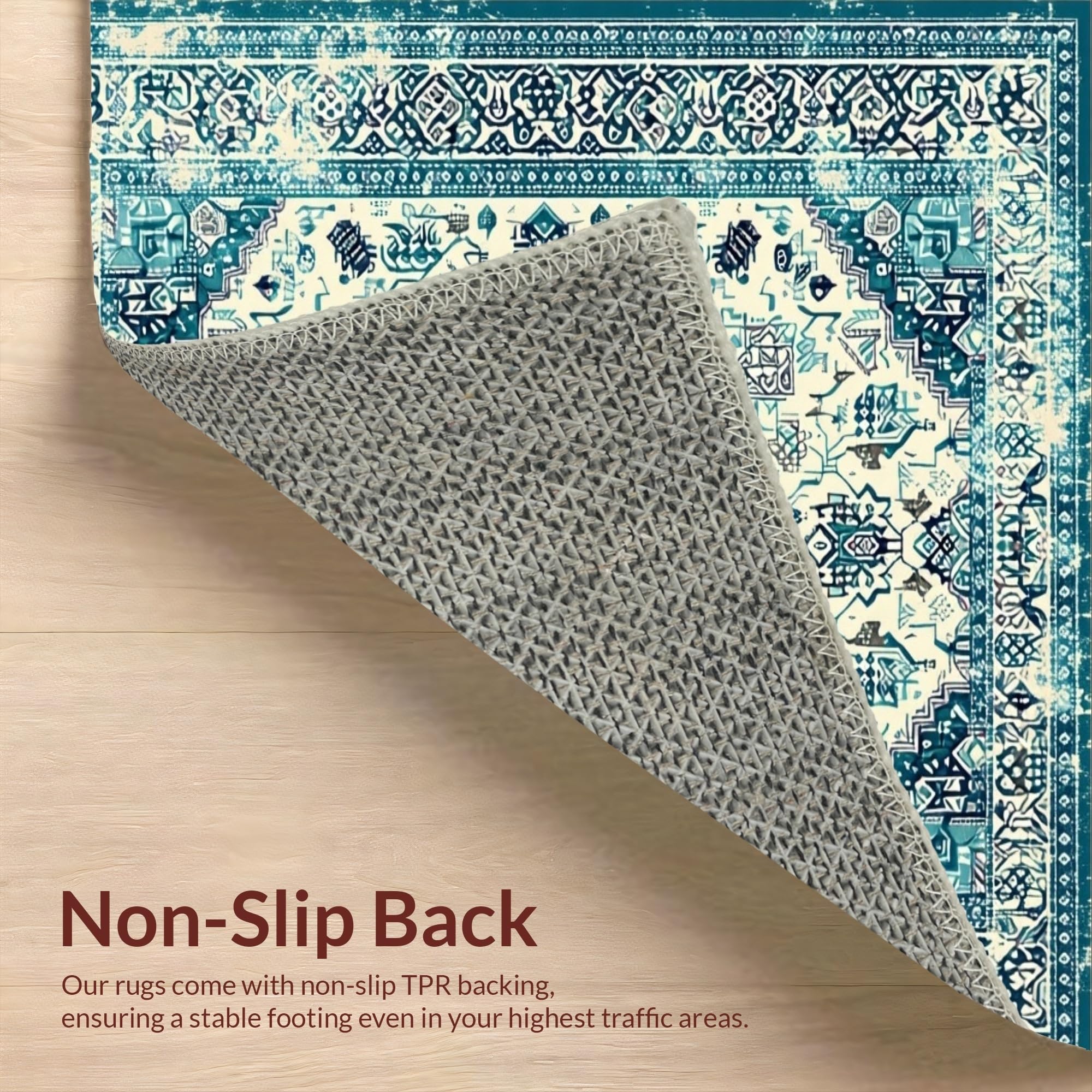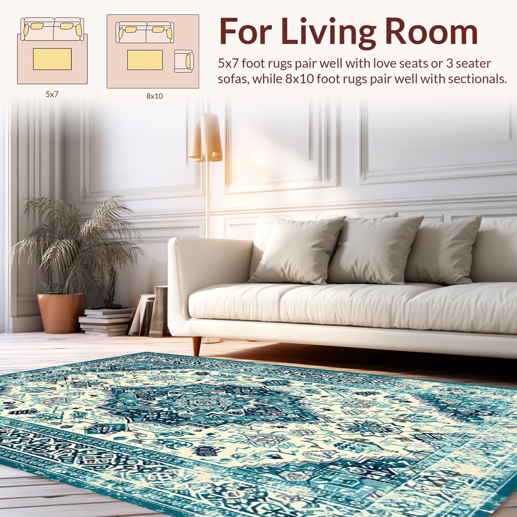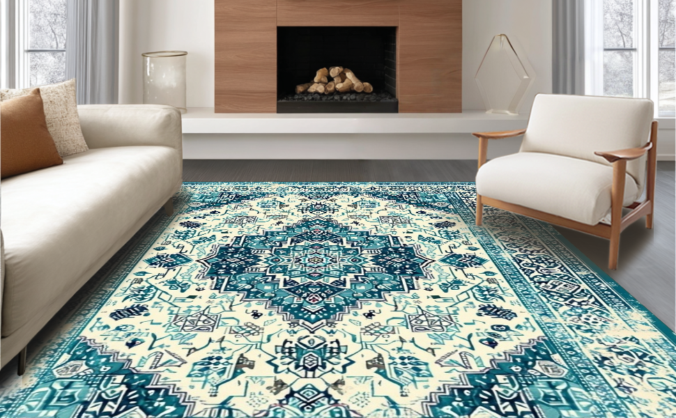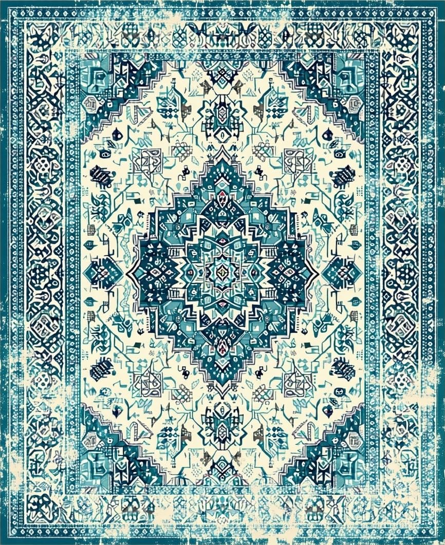 Ultra Soft Area Rug, Non Slip, Stain Resistant, Washable Area Rugs for Living Room, Bedroom, Timeless Textured Diamond Arrangement(Blue) Overview: