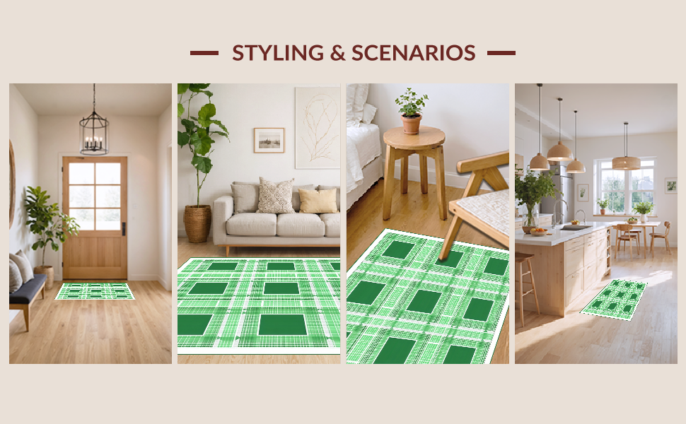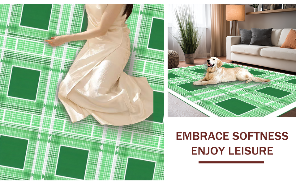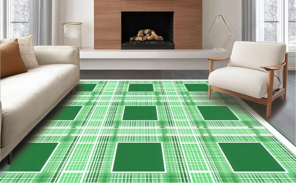 Ultra Soft Area Rug, Non Slip, Stain Resistant, Washable Area Rugs for Living Room, Bedroom, Timeless White and Sage Lattice Style(Green) Overview: