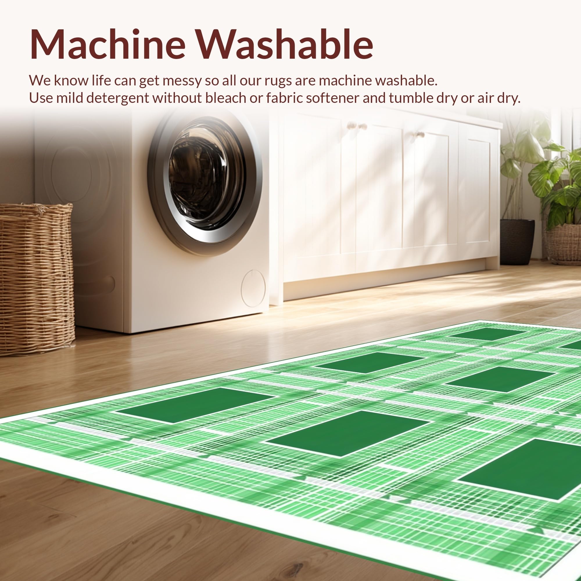 - Machine Washable: Our rugs can be easily thrown in the wash machine.