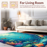 Flatwoven High Traffic Area Rug, Toddler Alphabet Shape Ocean Animal Classroom Floor, Non Slip, Stain Resistant, Washable Area Rugs for Living Room, Bedroom (Blue) Overview: