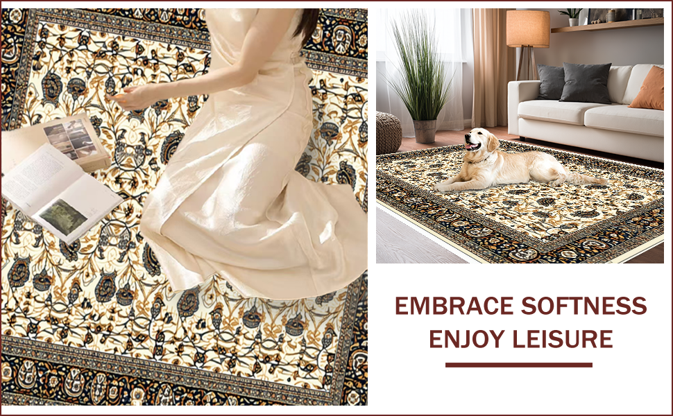 Ultra Soft Area Rug, Non Slip, Stain Resistant, Washable Area Rugs for Living Room, Bedroom, Traditional Beige Paisley Living Room Non-Slip Rug(Beige) Overview: