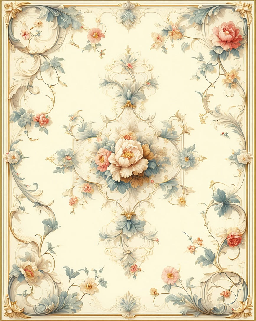 Traditional Blossom Featuring Ornate Medallion and Subtle Beige Palette(Ivory)