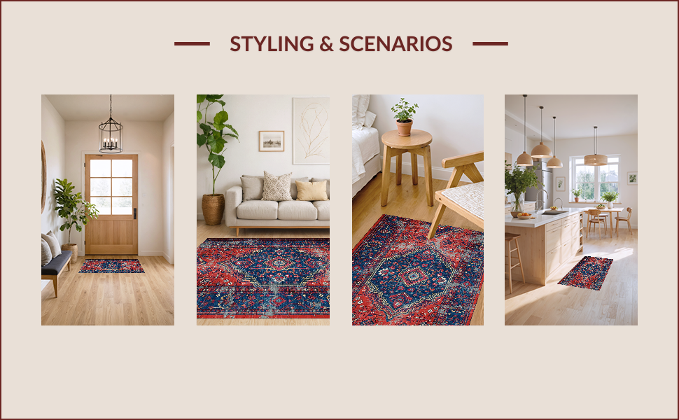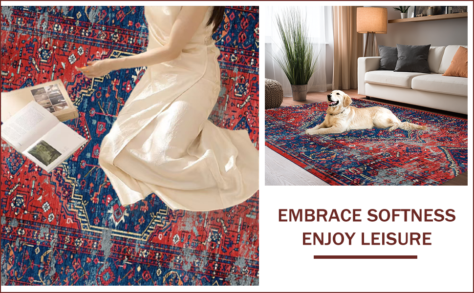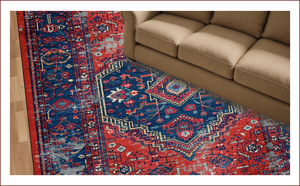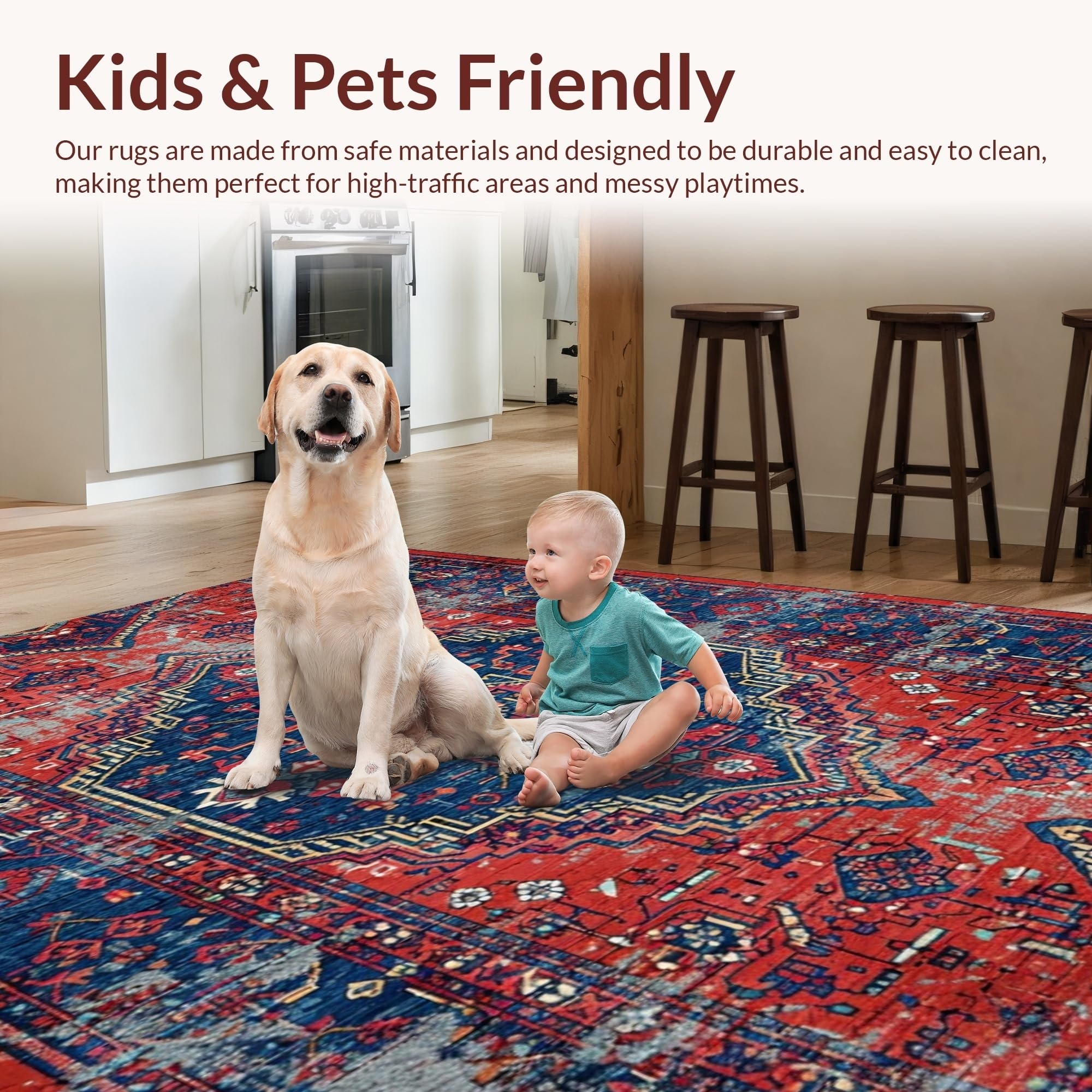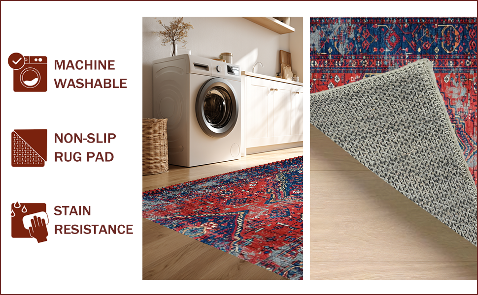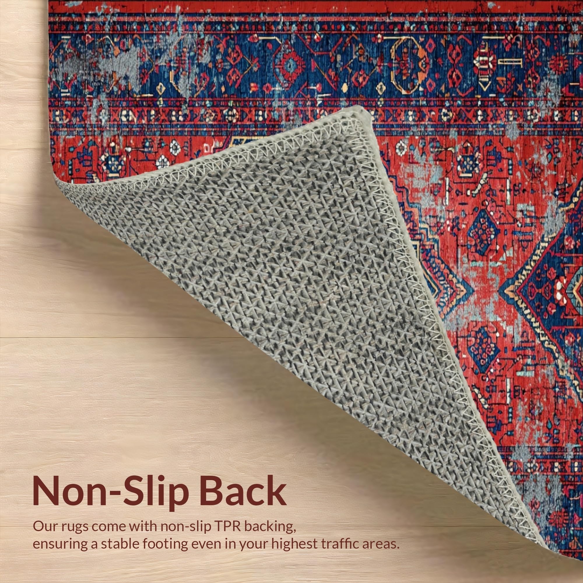 Ultra Soft Area Rug, Non Slip, Stain Resistant, Washable Area Rugs for Living Room, Bedroom, Traditional Boho Red Entryway Non-Slip Carpet(Red) Overview: