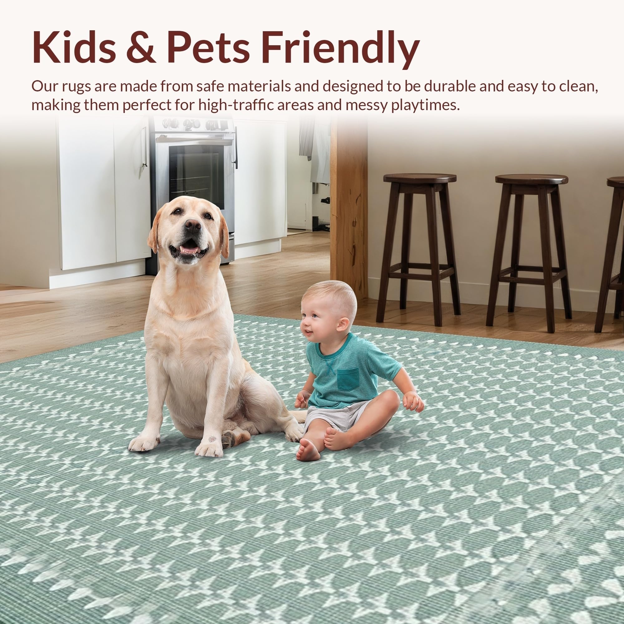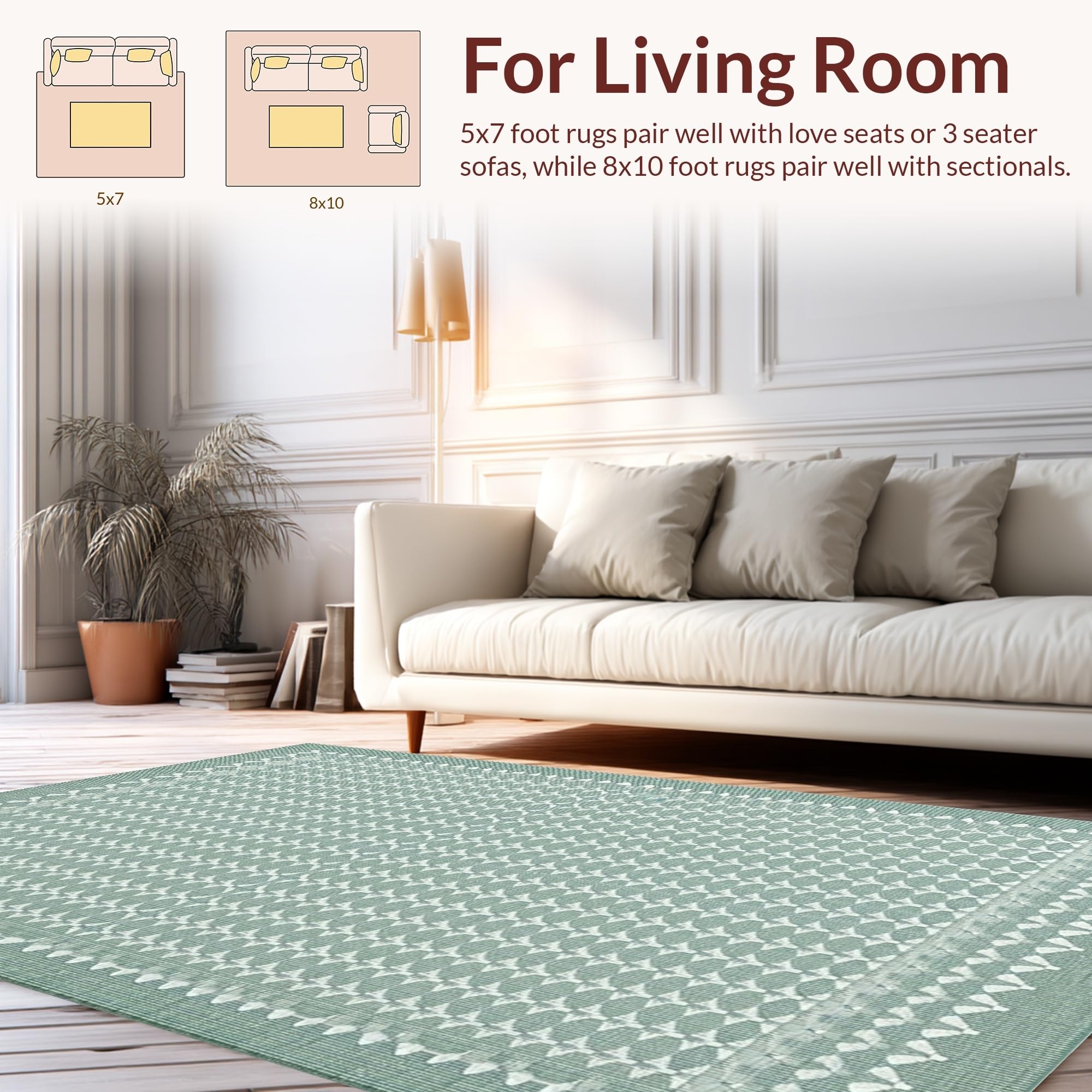 Ultra Soft Area Rug, Non Slip, Stain Resistant, Washable Area Rugs for Living Room, Bedroom, Traditional Cozy Scallop Design(Green) Overview: