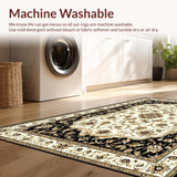 Ultra Soft Area Rug, Non Slip, Stain Resistant, Washable Area Rugs for Living Room, Bedroom, Traditional Elegant Floral Medallion(Black) Overview: