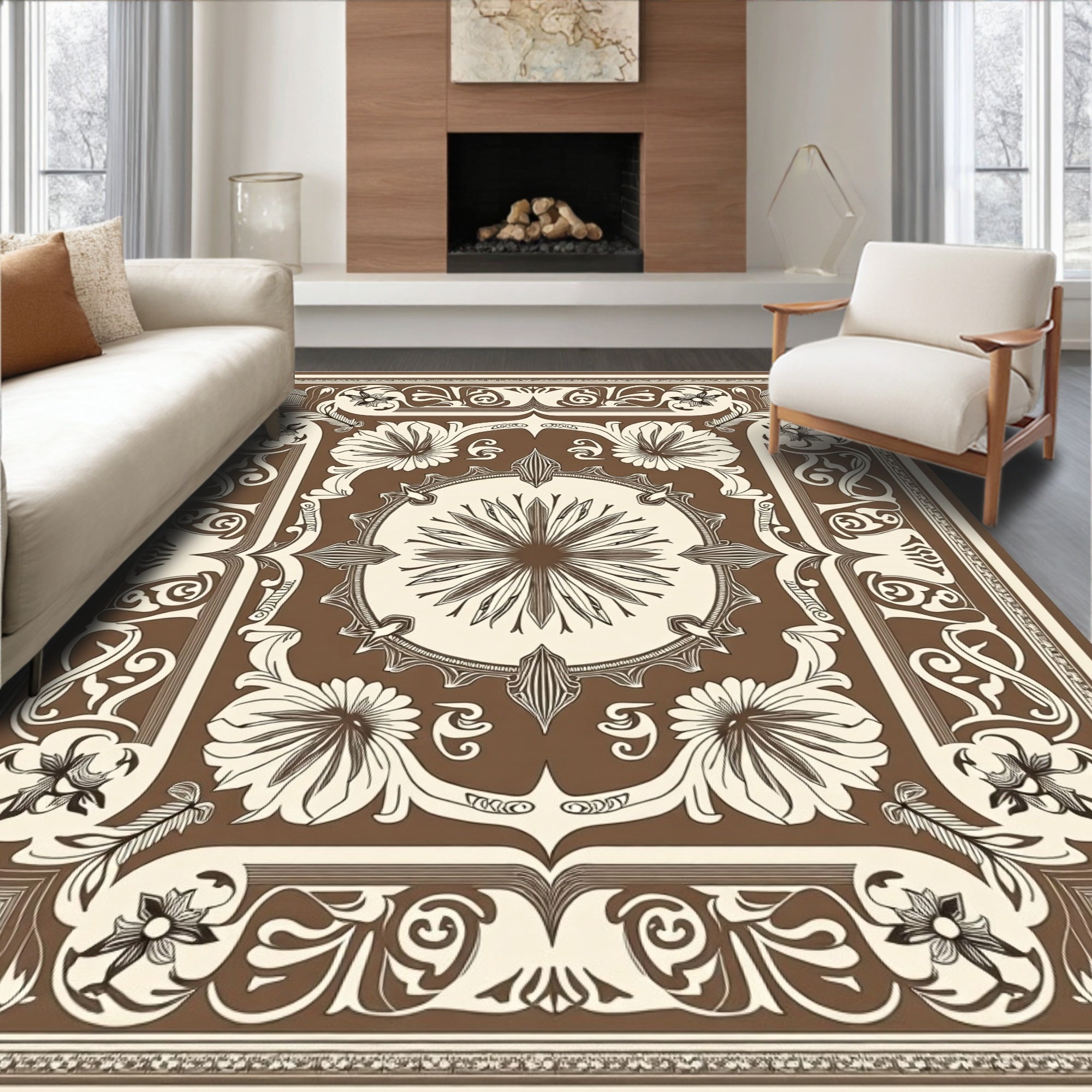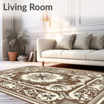 Flatwoven High Traffic Area Rug, Traditional Feathered Blossom Ornate Handwoven, Non Slip, Stain Resistant, Washable Area Rugs for Living Room, Bedroom (Brown) Overview: