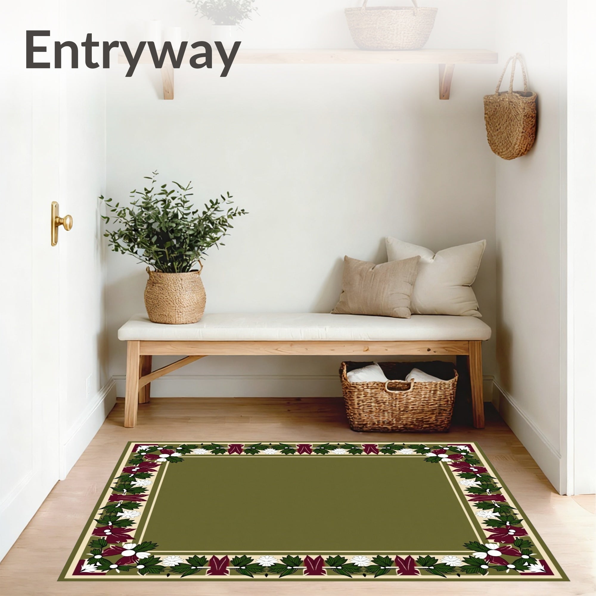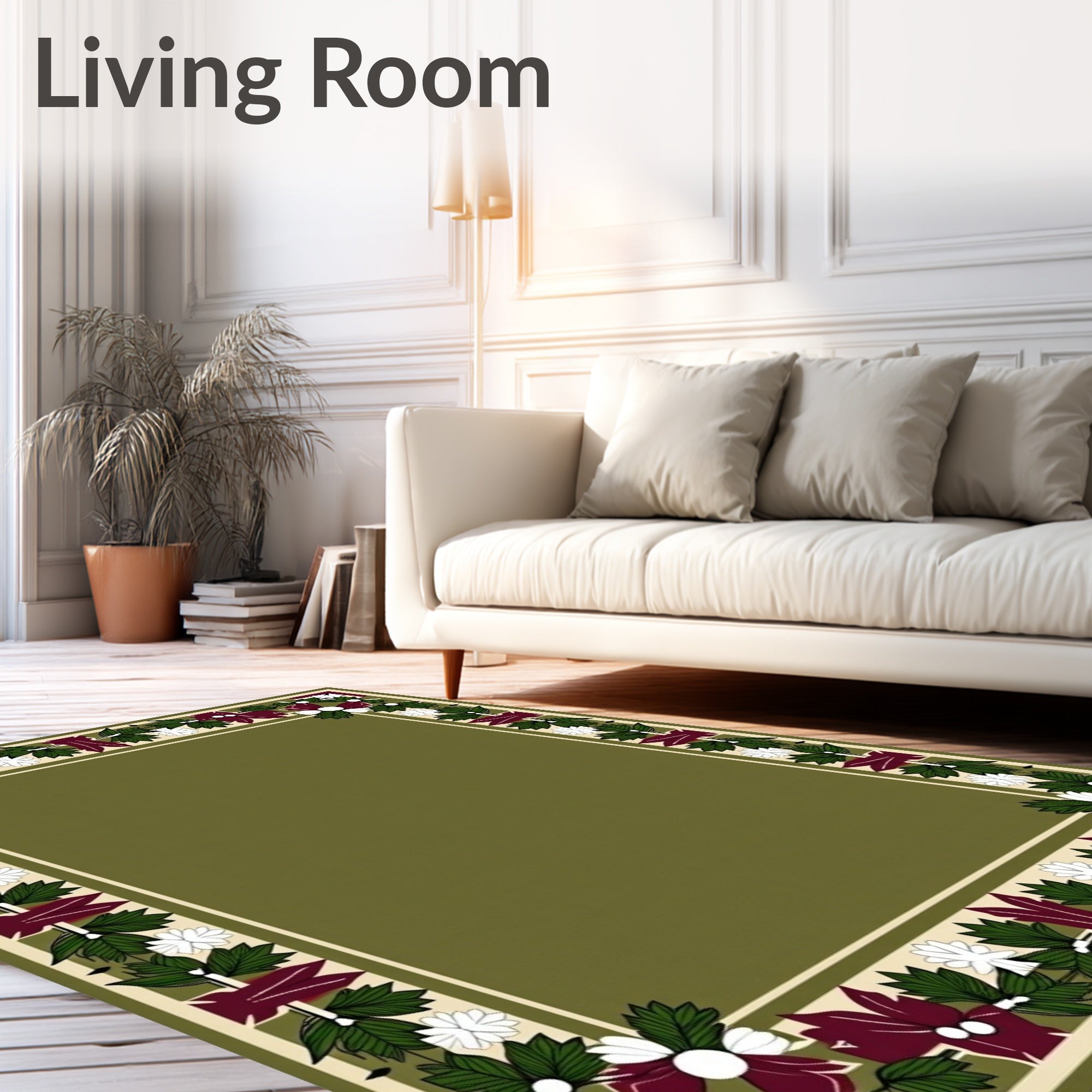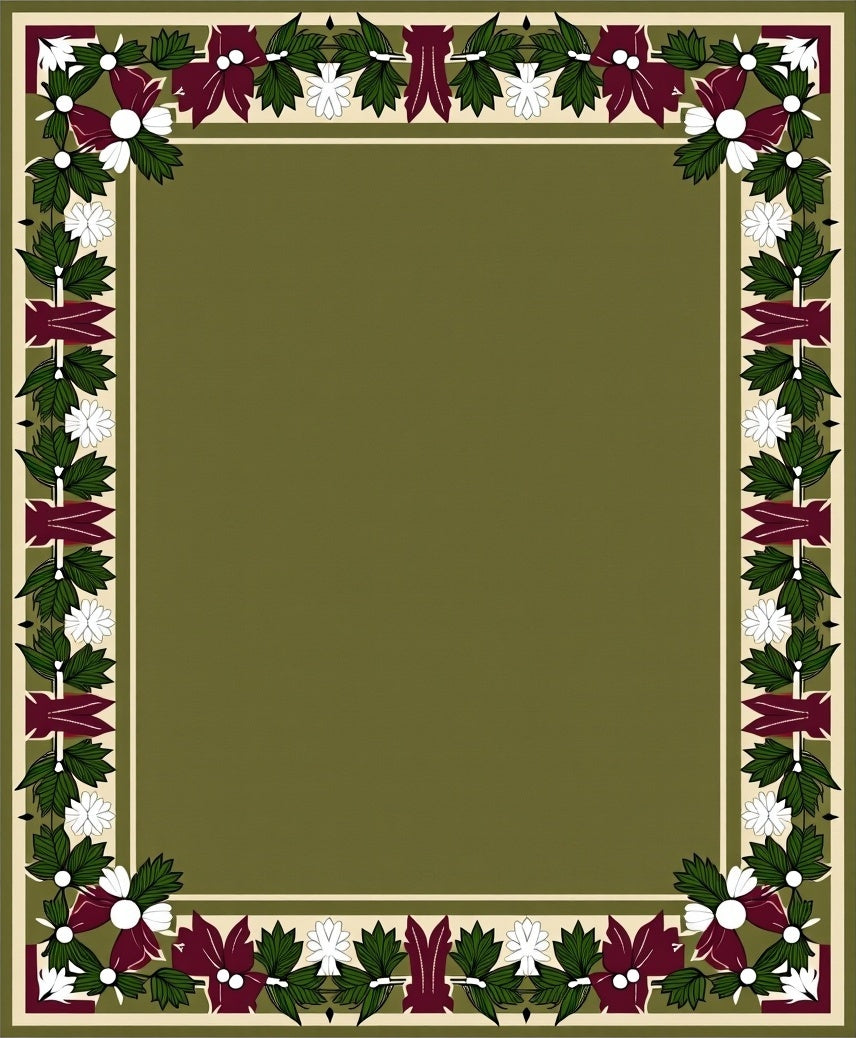 Ultra Soft Area Rug, Non Slip, Stain Resistant, Washable Area Rugs for Living Room, Bedroom, Traditional Mistletoe Border with Festive(Green) Overview: