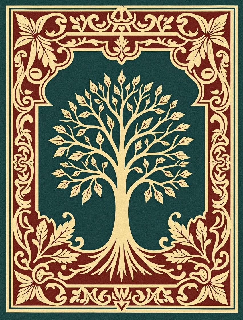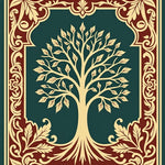 Traditional Oak Tree Motif with Decorative Branch Scrollwork(Green)