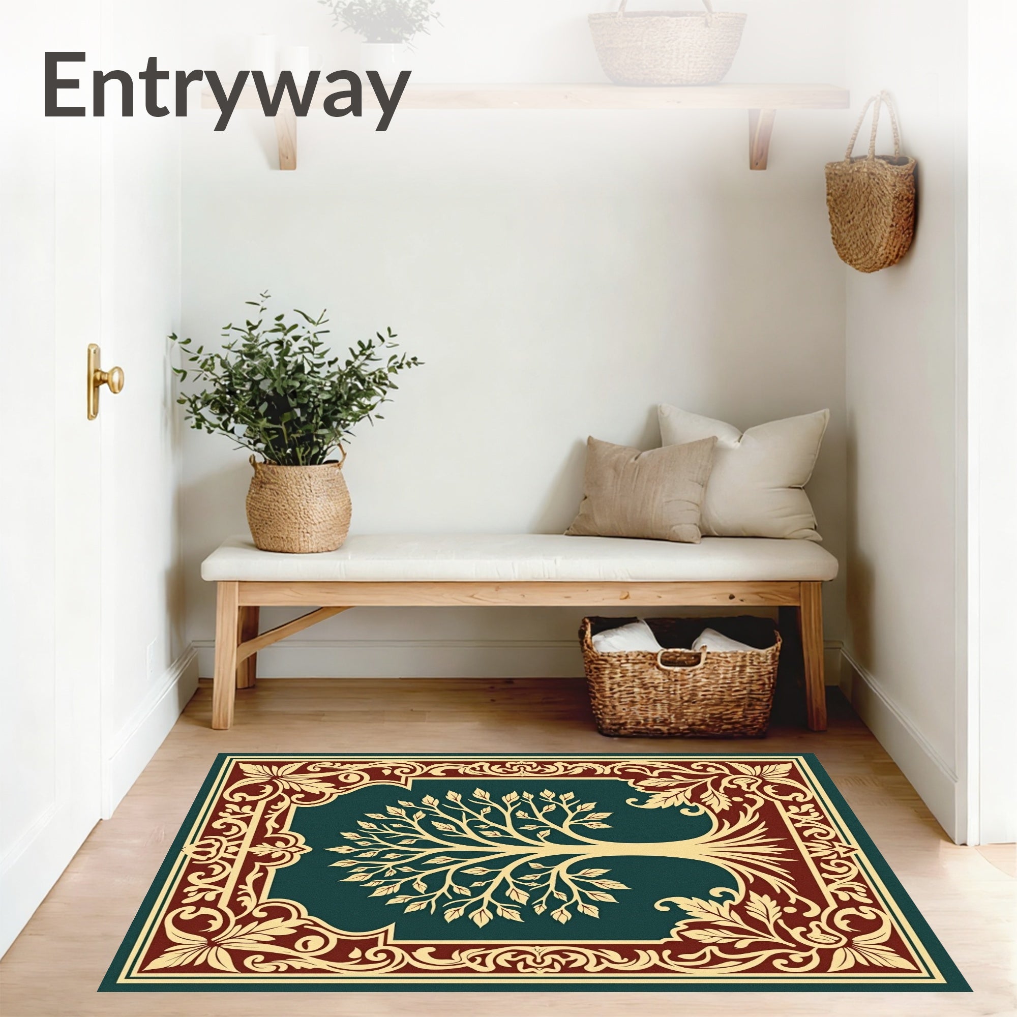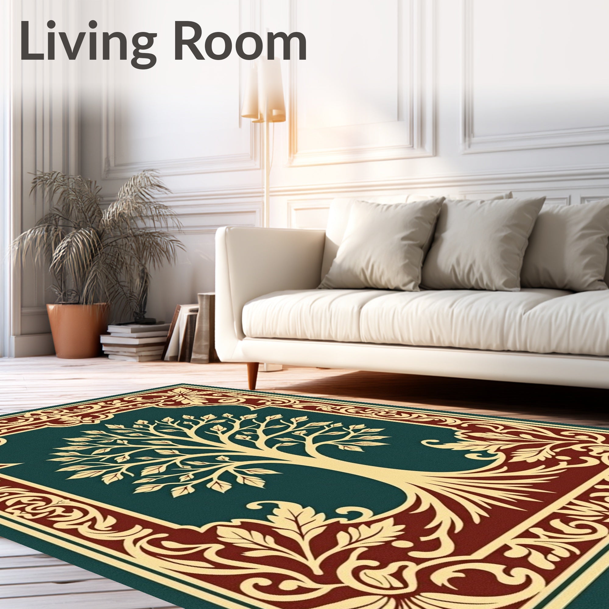 Ultra Soft Area Rug, Non Slip, Stain Resistant, Washable Area Rugs for Living Room, Bedroom, Traditional Oak Tree Motif with Decorative Branch Scrollwork(Green) Overview:
