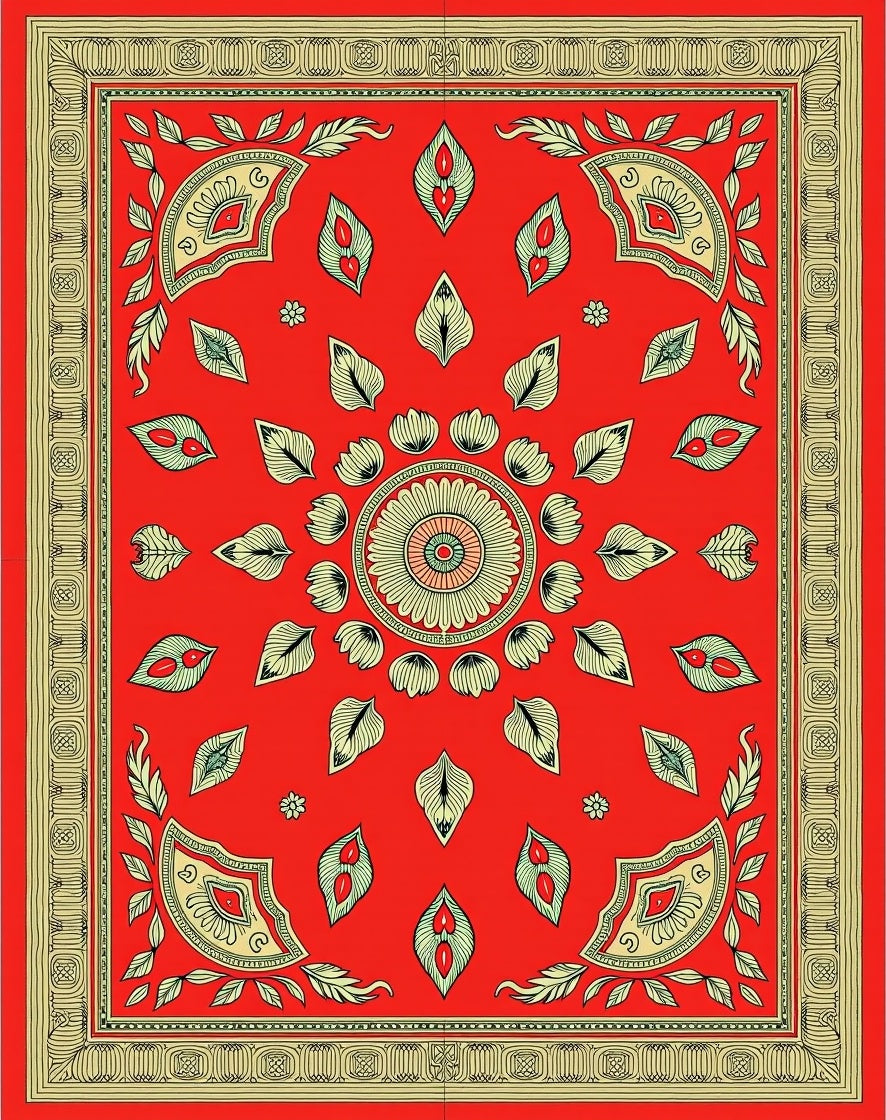 Traditional Paisley Tapestry with Ornamental Border Accents Low Pile(Red)