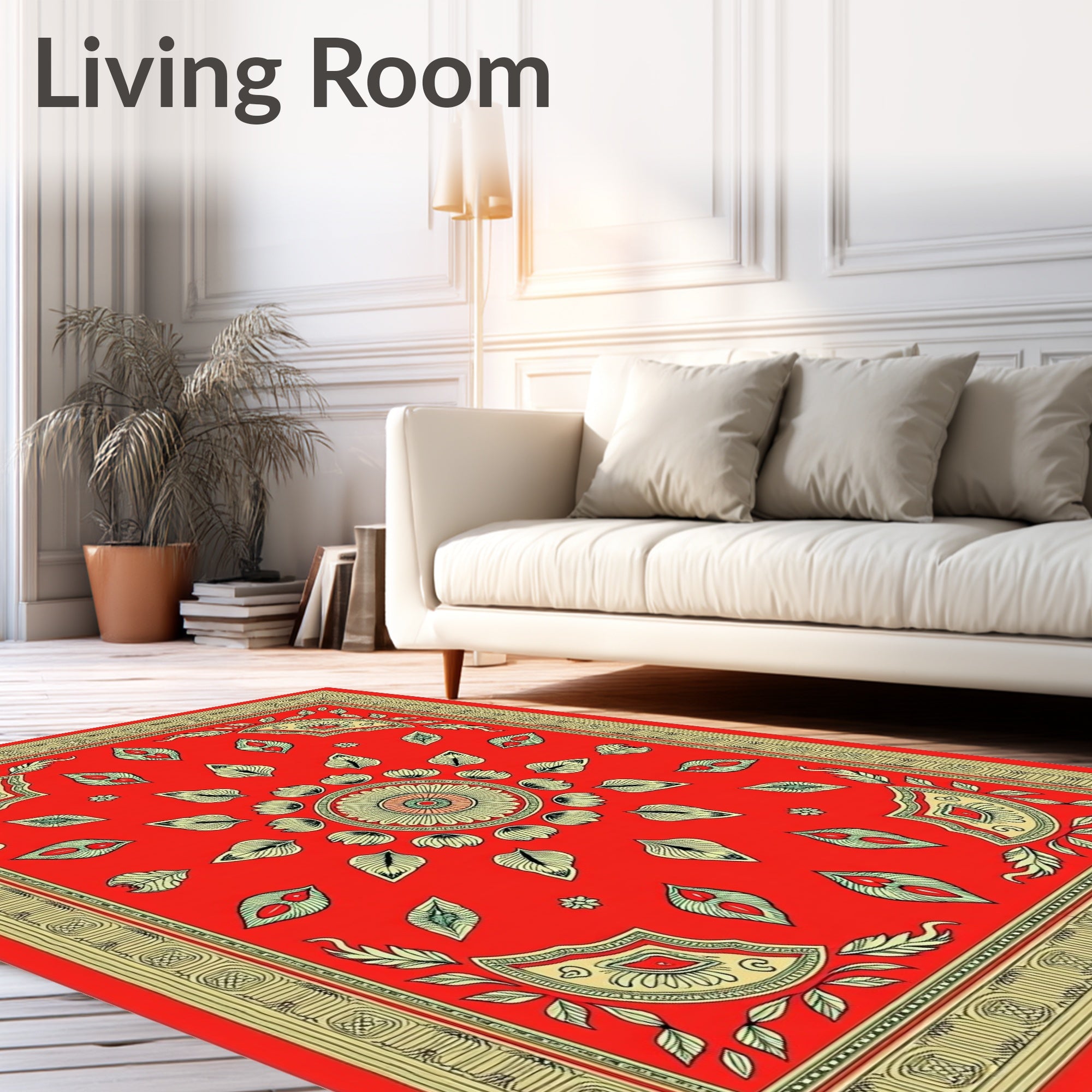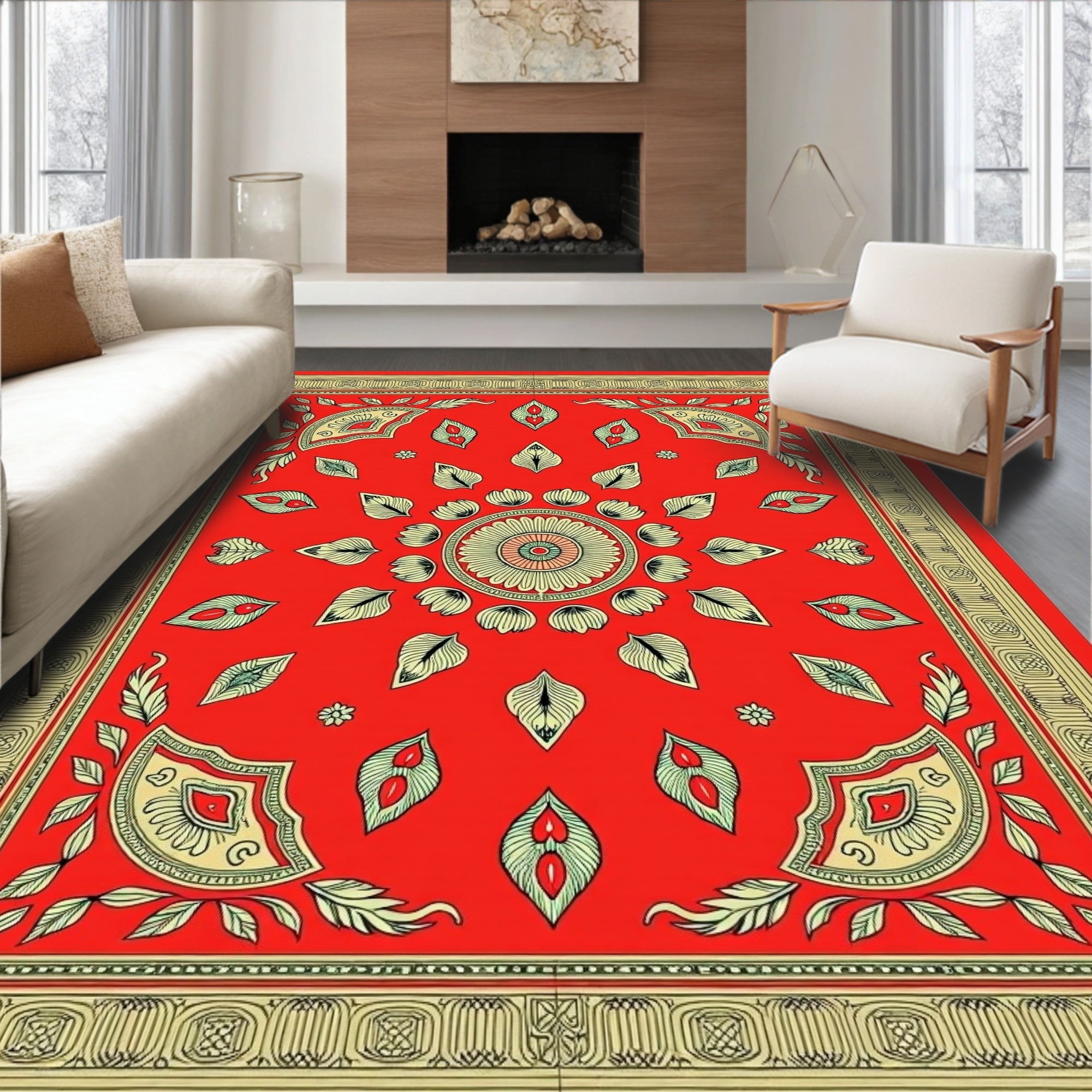 Ultra Soft Area Rug, Non Slip, Stain Resistant, Washable Area Rugs for Living Room, Bedroom, Traditional Paisley Tapestry with Ornamental Border Accents Low Pile(Red) Overview: