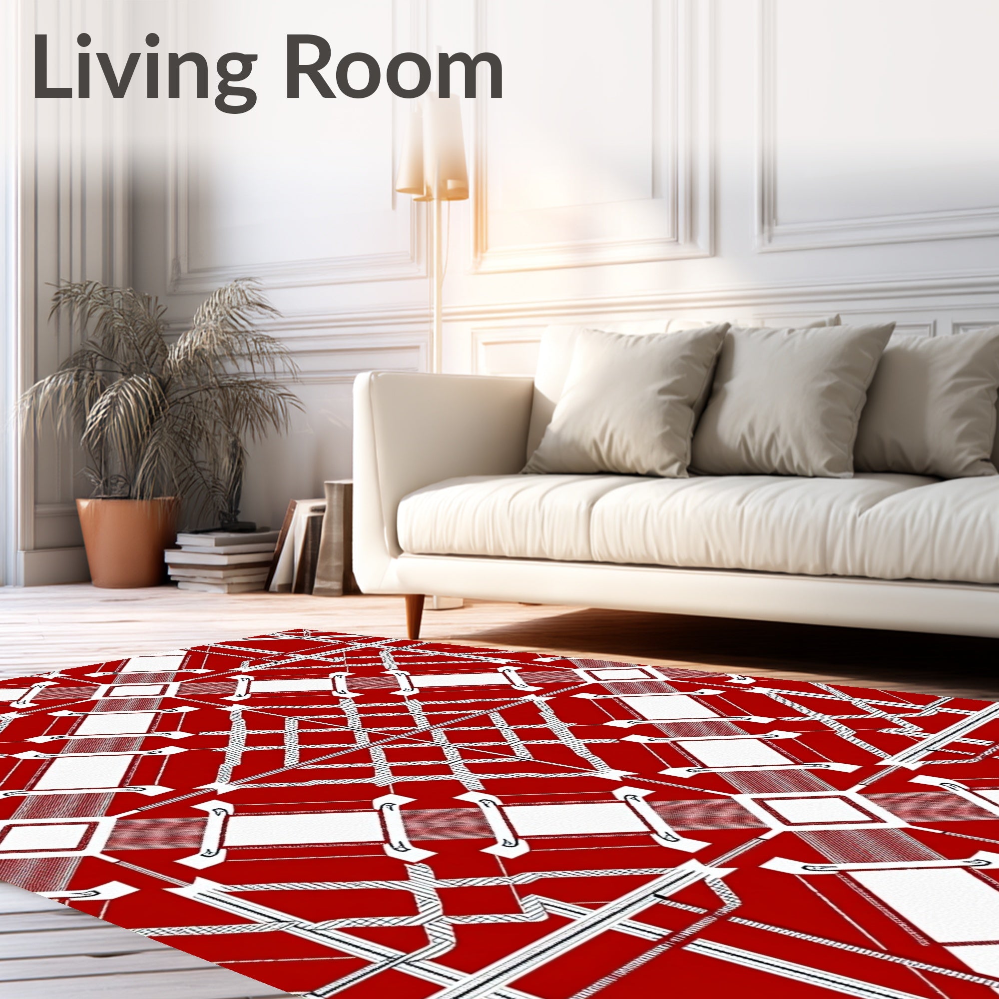 Ultra Soft Area Rug, Non Slip, Stain Resistant, Washable Area Rugs for Living Room, Bedroom, Traditional Plaid with Intersecting Lines Christmas Motif(Red) Overview: