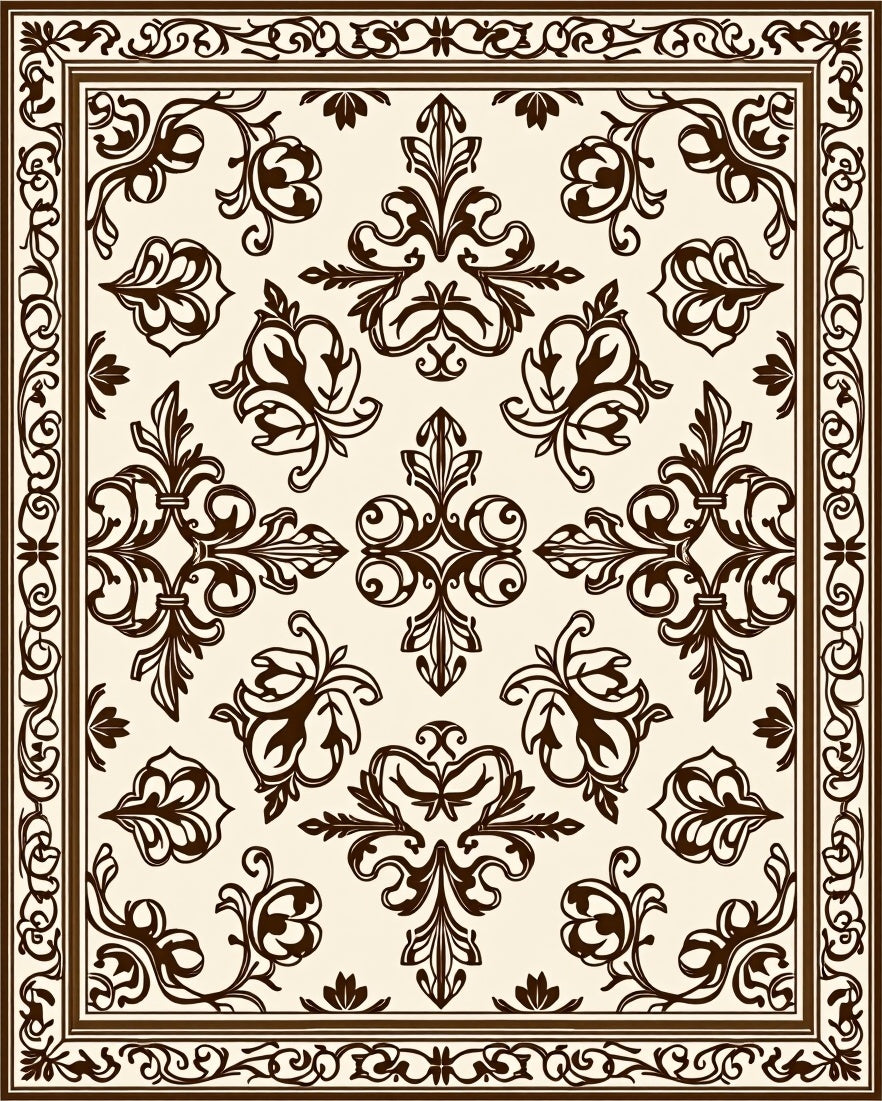 Traditional Scrollwork Design Featuring Intricate Leafy Accents(Brown)
