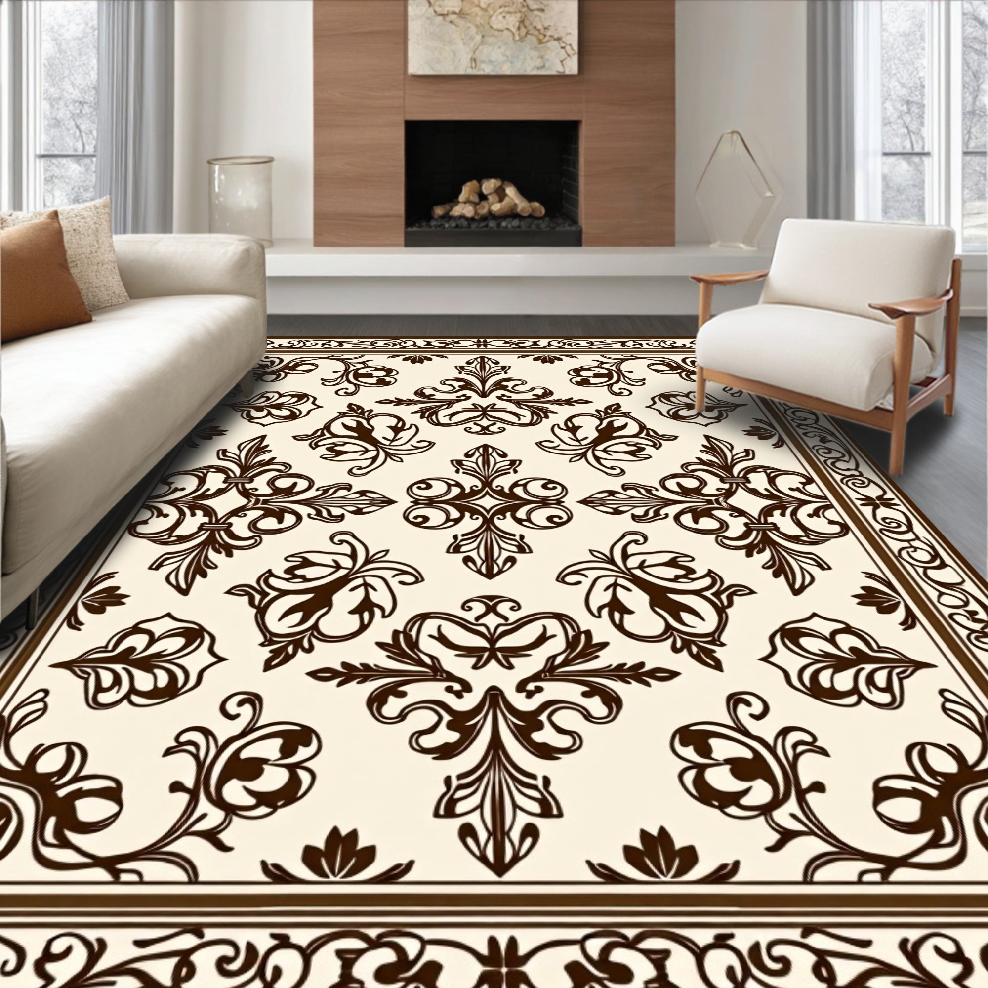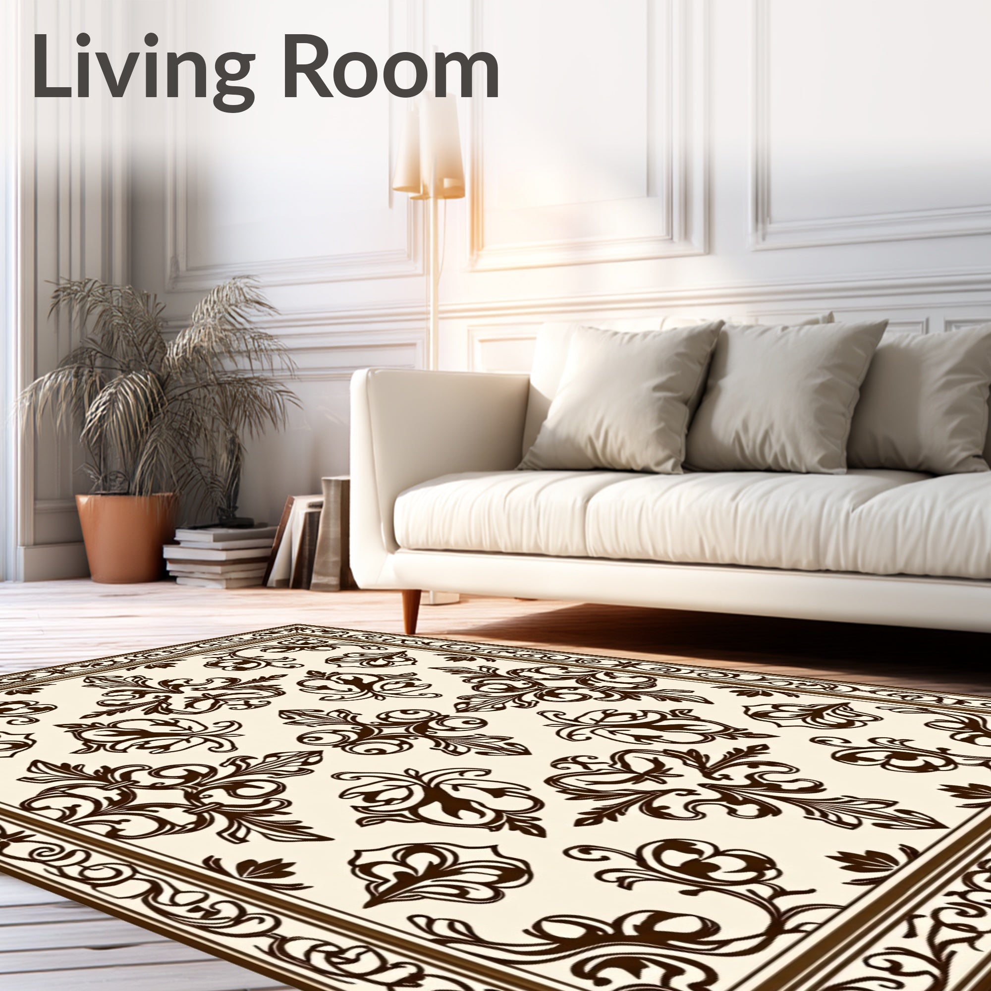 Flatwoven High Traffic Area Rug, Traditional Scrollwork Design Featuring Intricate Leafy Accents, Non Slip, Stain Resistant, Washable Area Rugs for Living Room, Bedroom (Brown) Overview: