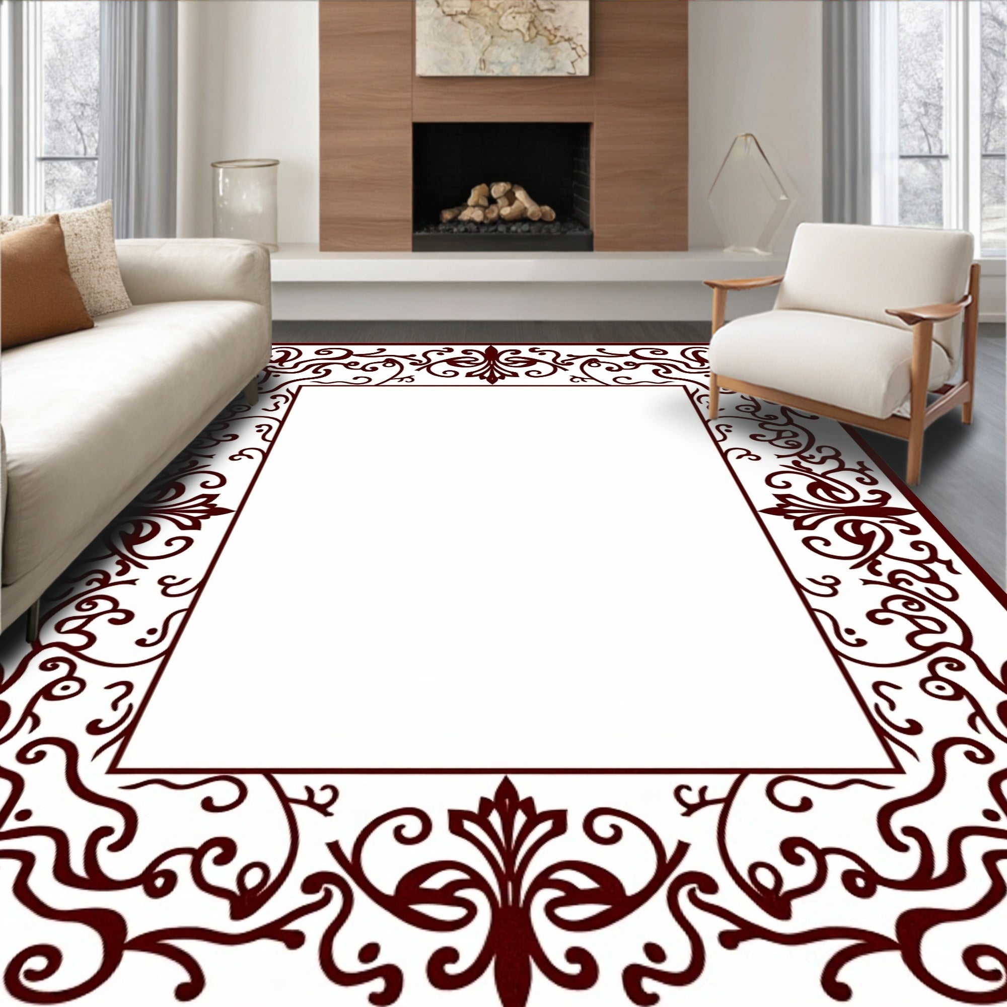 Flatwoven High Traffic Area Rug, Traditional Scrollwork Design Featuring Symmetrical Vine, Non Slip, Stain Resistant, Washable Area Rugs for Living Room, Bedroom (Brown) Overview: