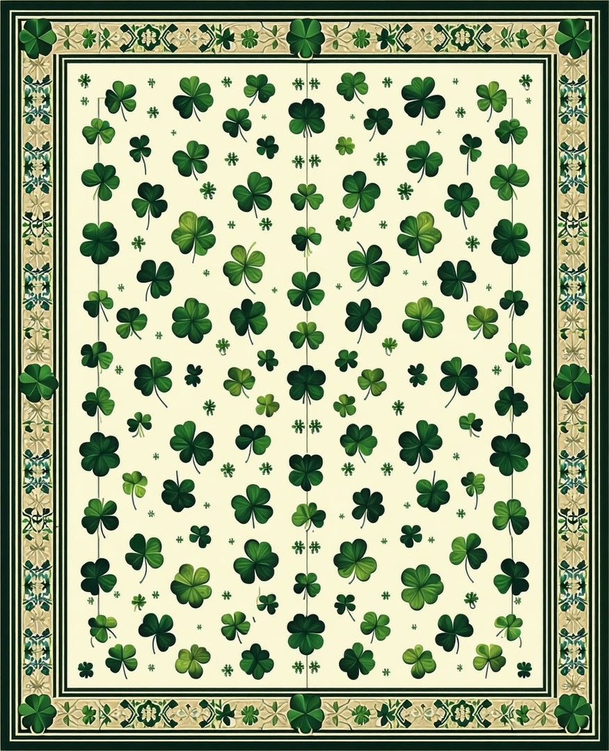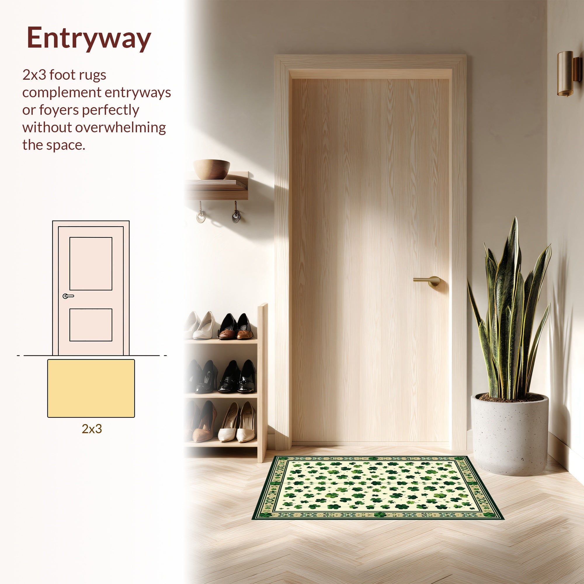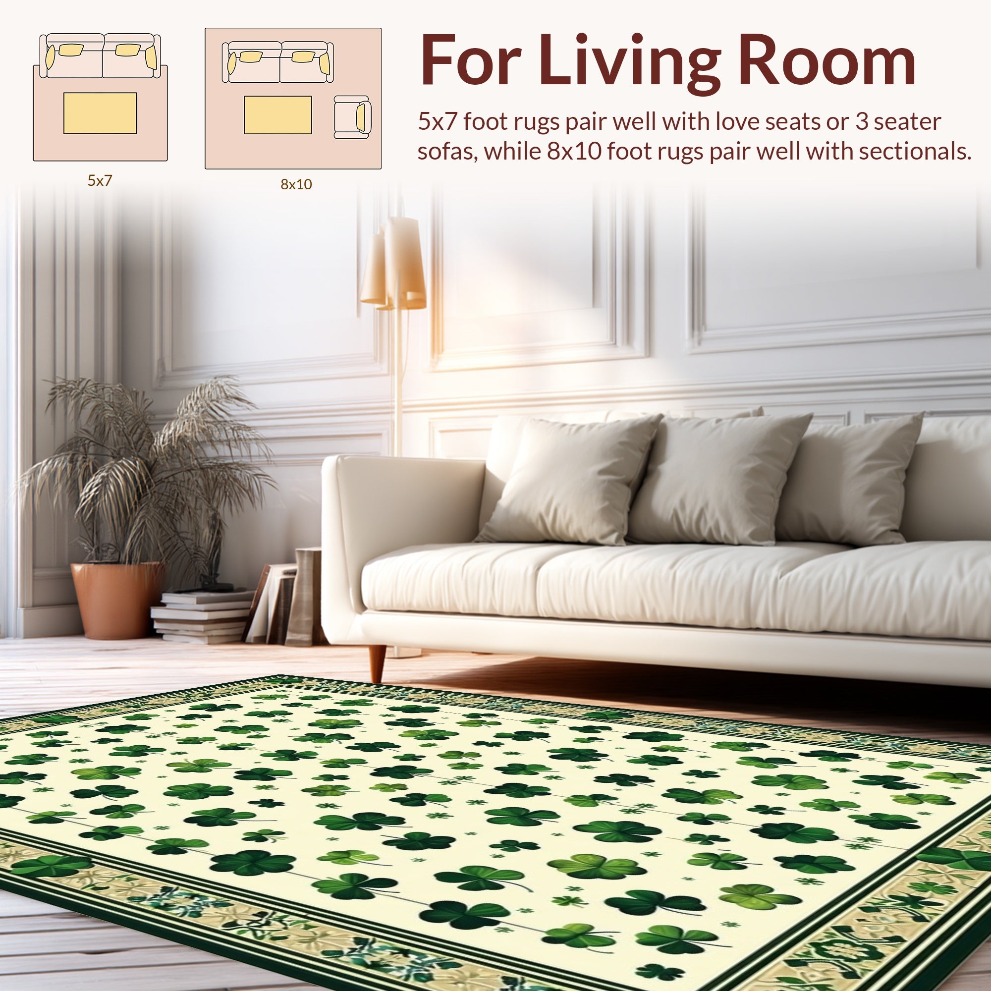 Flatwoven High Traffic Area Rug, Traditional Shamrock Patterned, Non Slip, Stain Resistant, Washable Area Rugs for Living Room, Bedroom (Green) Overview: