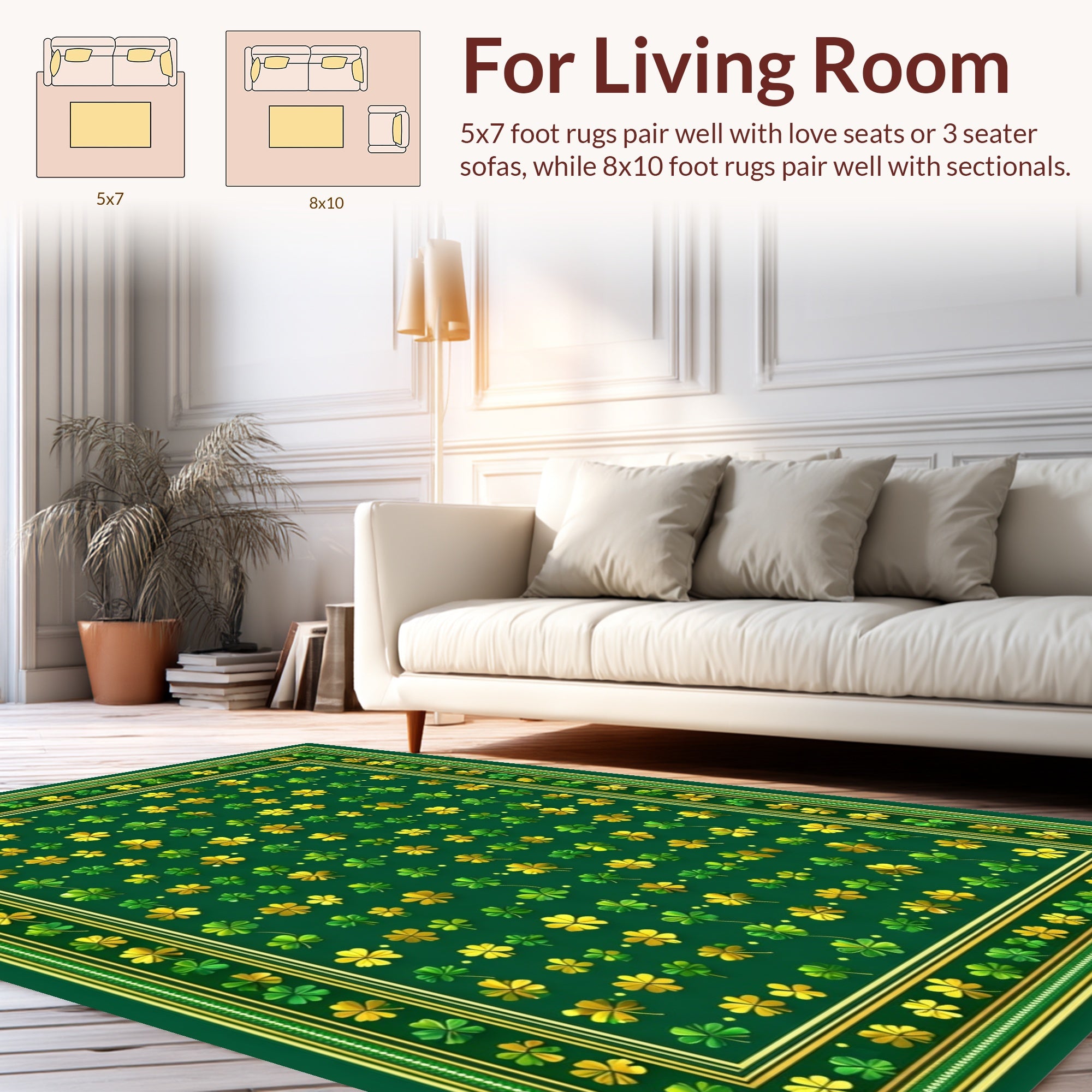 Flatwoven High Traffic Area Rug, Traditional St Patrick Day Palette, Non Slip, Stain Resistant, Washable Area Rugs for Living Room, Bedroom (Green) Overview: