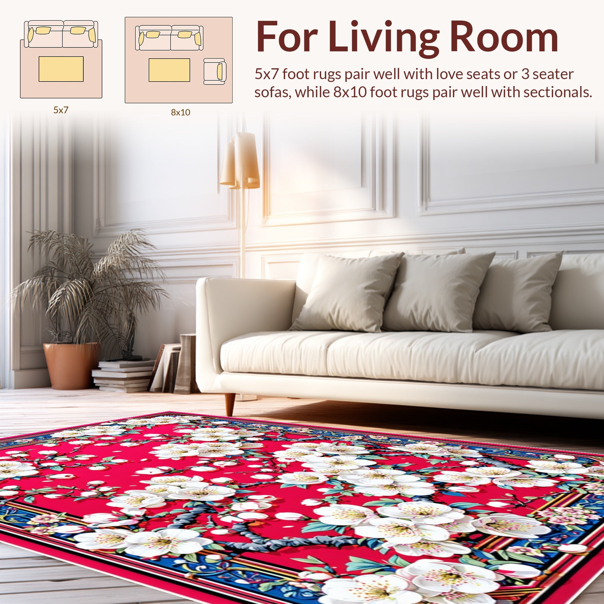 Flatwoven High Traffic Area Rug, Traditional Blossom Prayer for Meditation Space, Non Slip, Stain Resistant, Washable Area Rugs for Living Room, Bedroom (Red) Overview:
