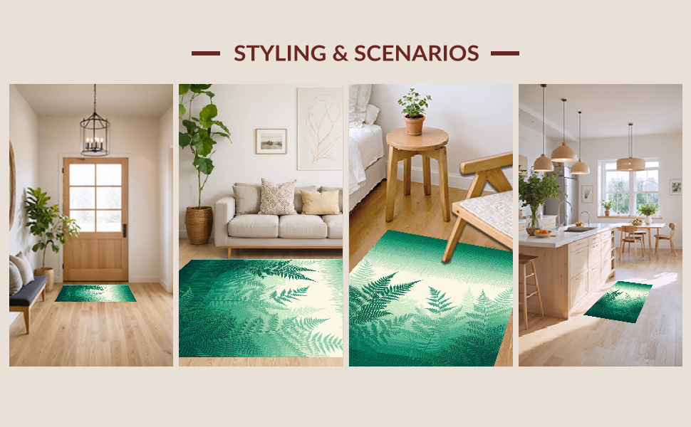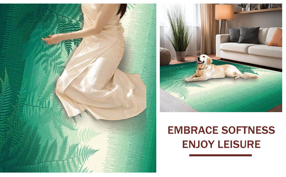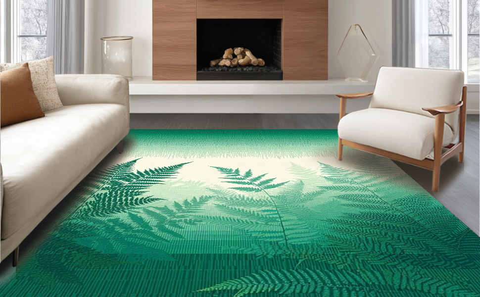 Ultra Soft Area Rug, Non Slip, Stain Resistant, Washable Area Rugs for Living Room, Bedroom, Tranquil Curved Organic Design(Green) Overview: