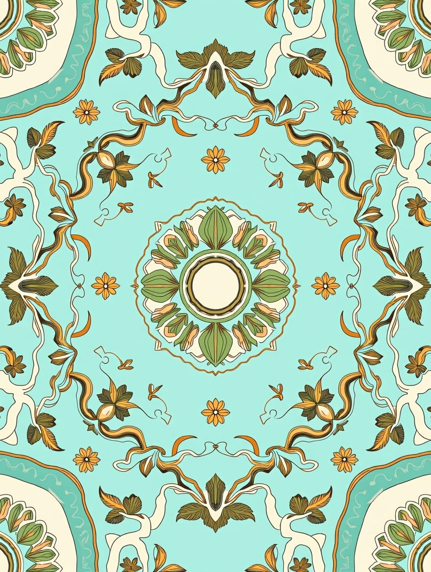 Tranquil Meadow Interlocking Floral Medallion(Blue)