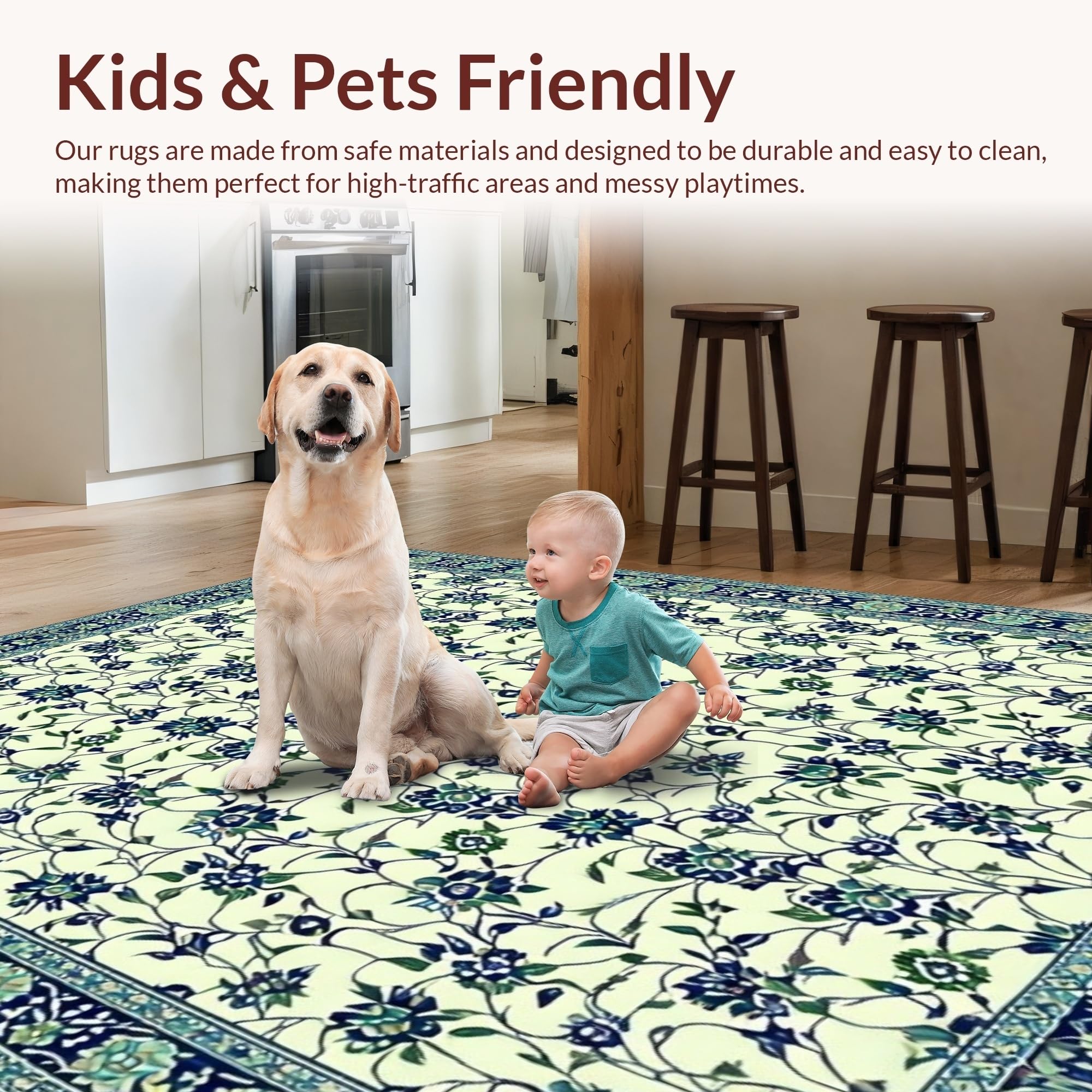 Ultra Soft Area Rug, Non Slip, Stain Resistant, Washable Area Rugs for Living Room, Bedroom, Tranquil Pastel Geometric Fusion(Ivory) Overview: