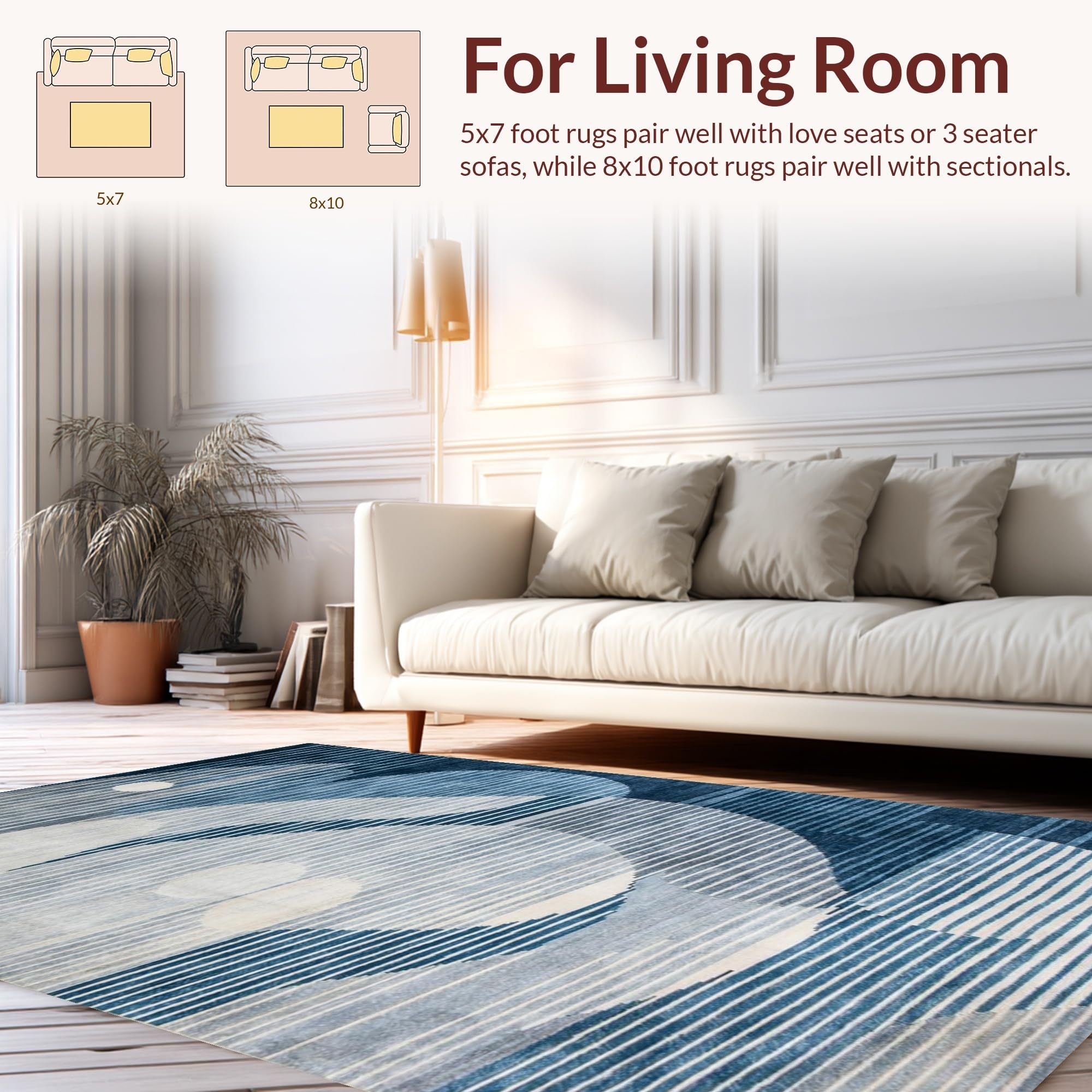 Ultra Soft Area Rug, Non Slip, Stain Resistant, Washable Area Rugs for Living Room, Bedroom, Tranquil Soft Blue Toned Elegance(Blue) Overview: