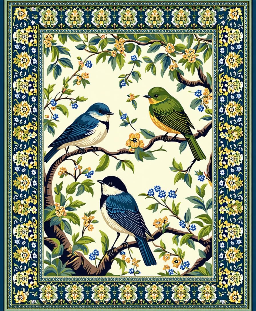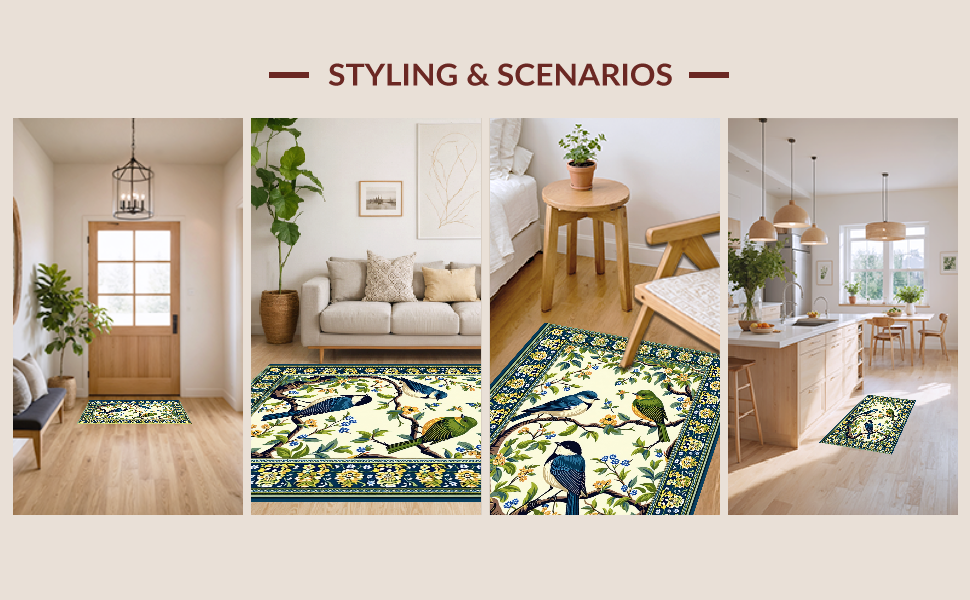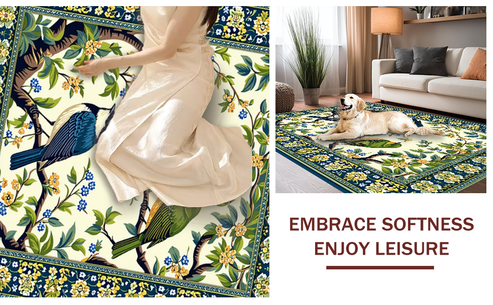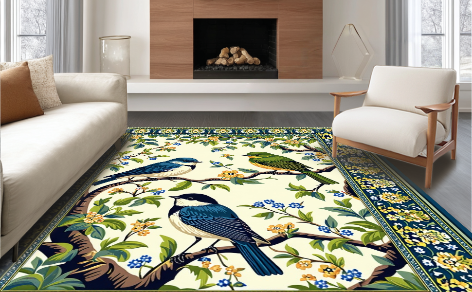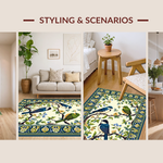 Ultra Soft Area Rug, Non Slip, Stain Resistant, Washable Area Rugs for Living Room, Bedroom, Transitional Artistic Bird Motif(Ivory) Overview:
