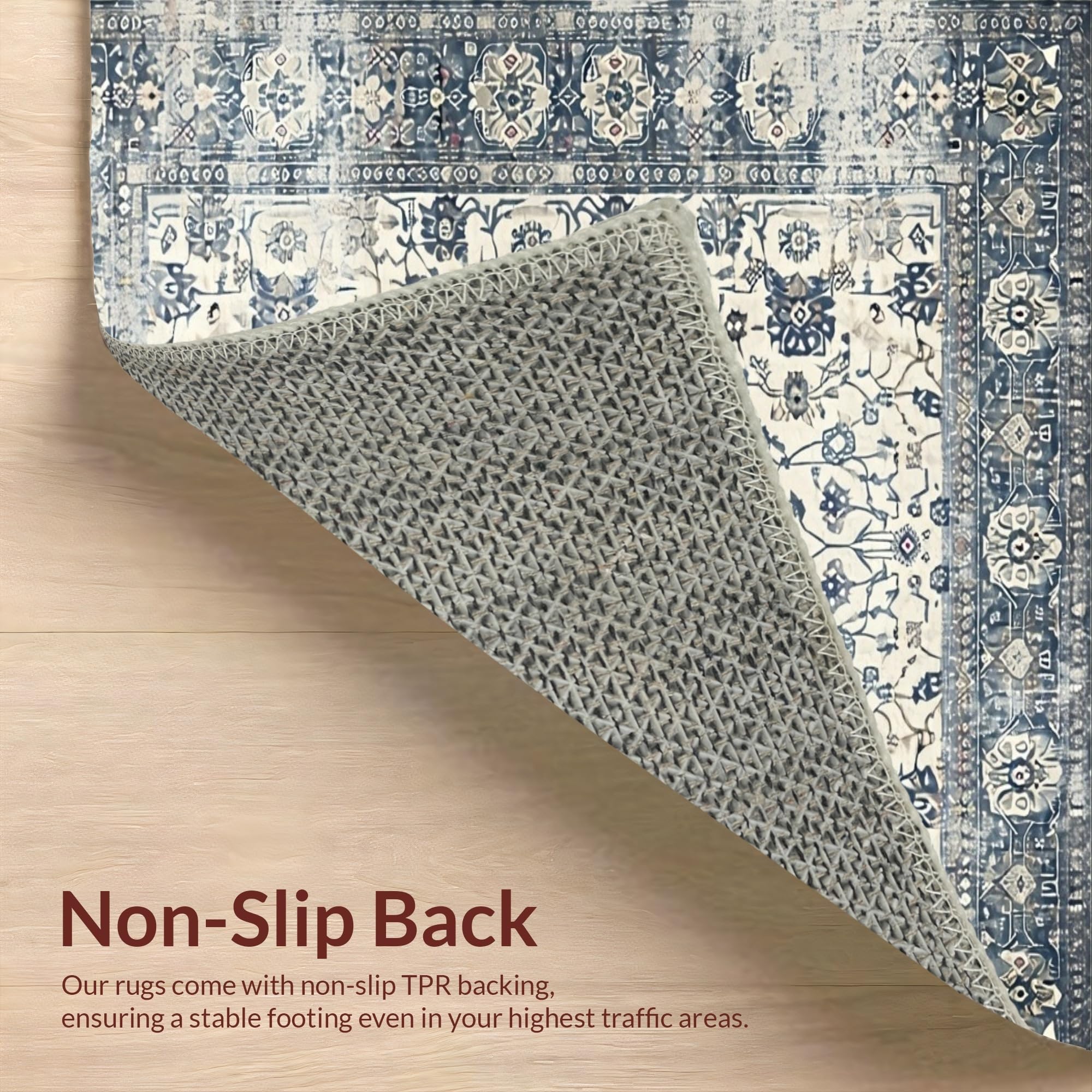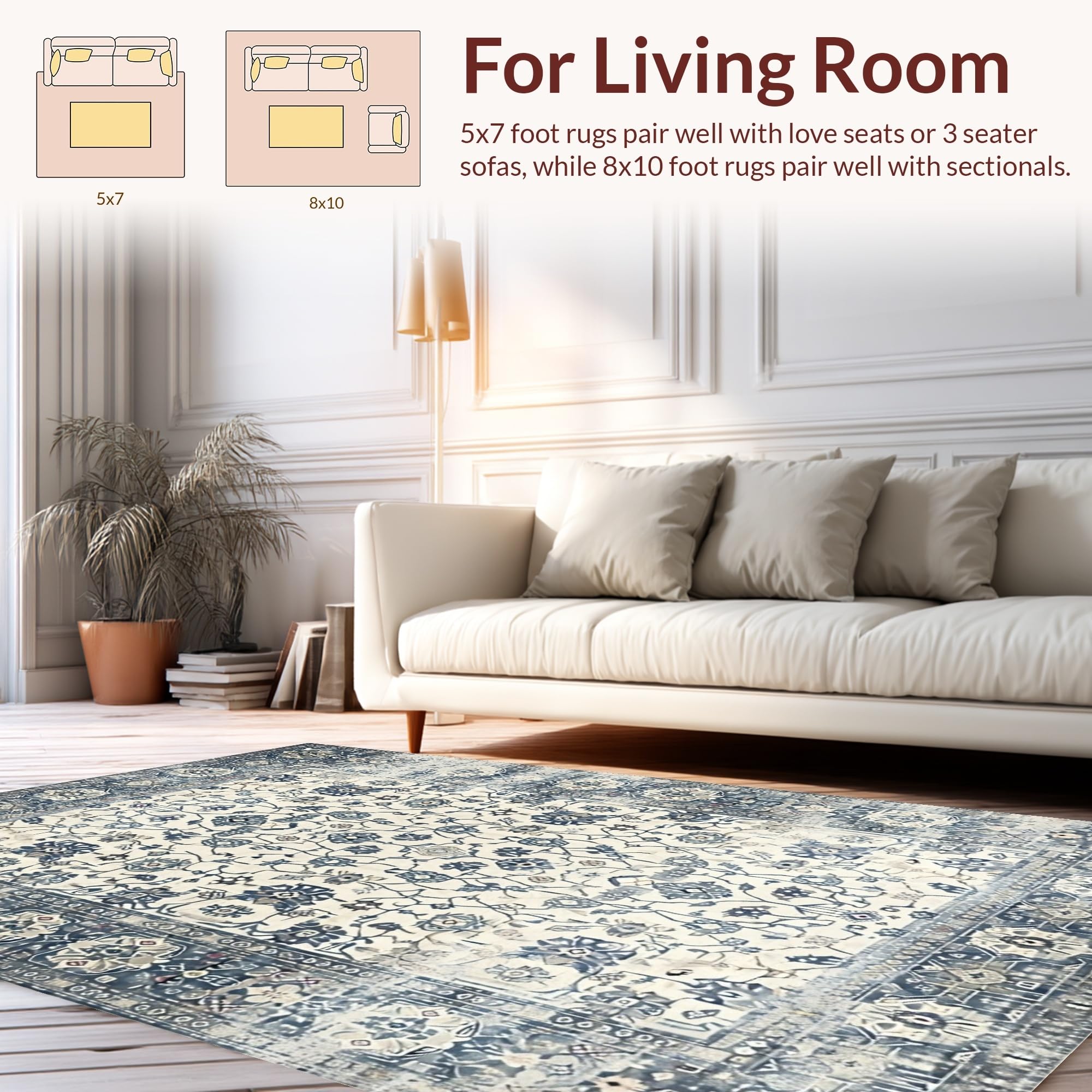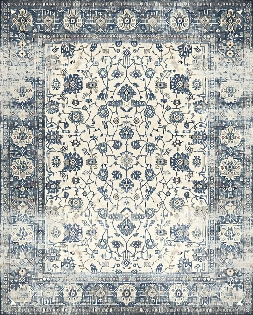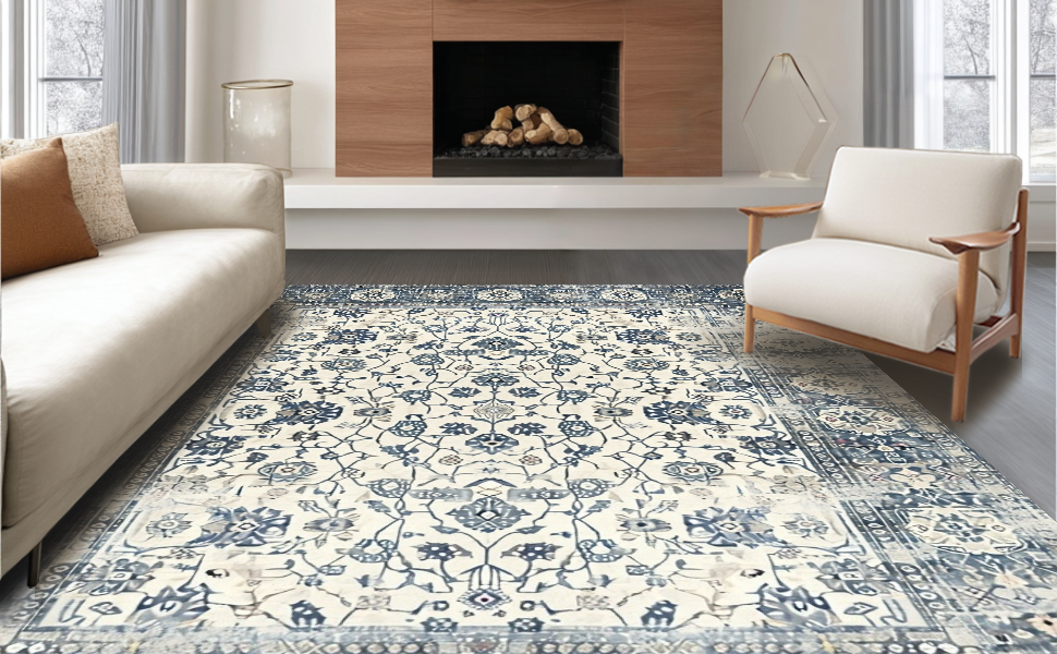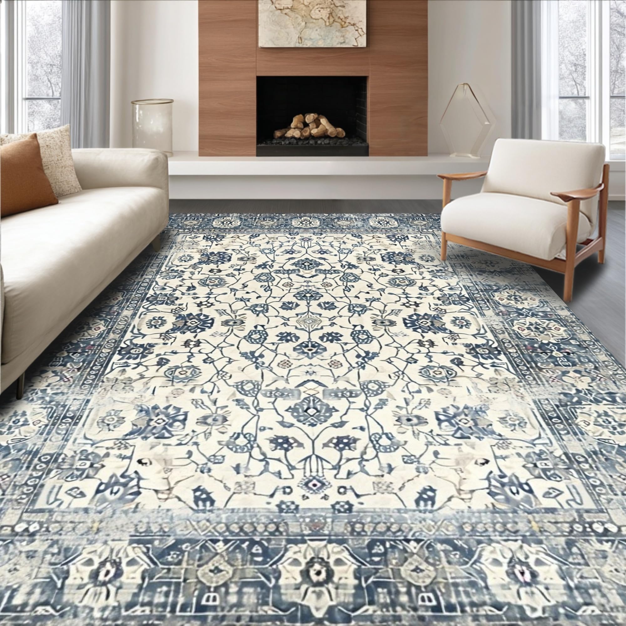 Ultra Soft Area Rug, Non Slip, Stain Resistant, Washable Area Rugs for Living Room, Bedroom, Transitional Classic Diamond Arrangement(Blue) Overview: