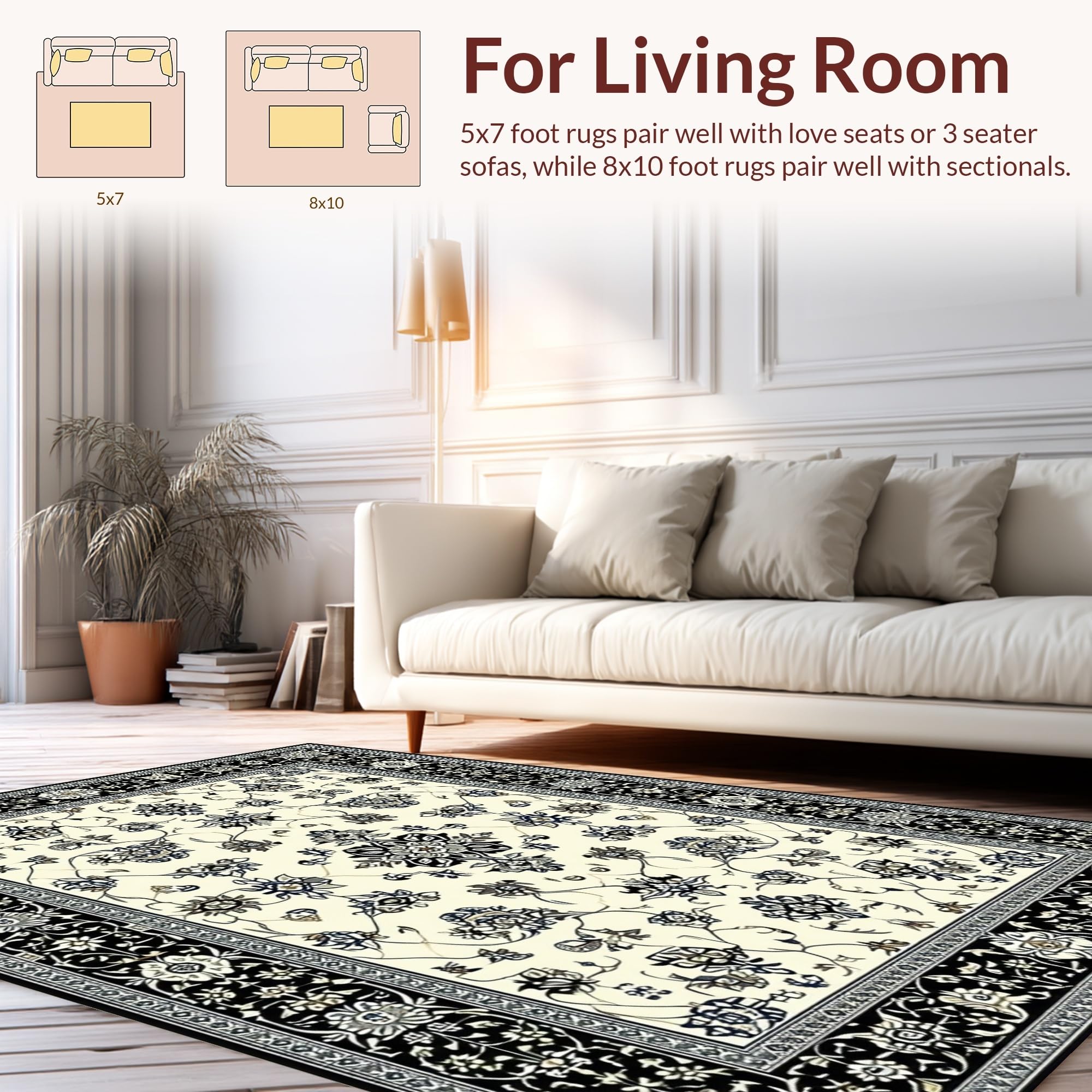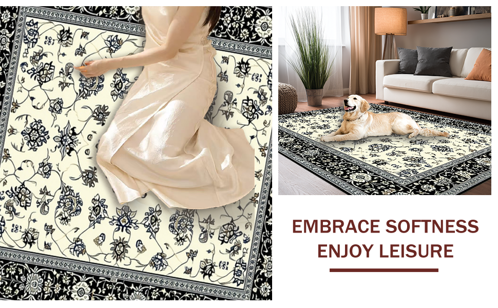 Ultra Soft Area Rug, Non Slip, Stain Resistant, Washable Area Rugs for Living Room, Bedroom, Transitional Classic Ogee Pattern(Beige) Overview: