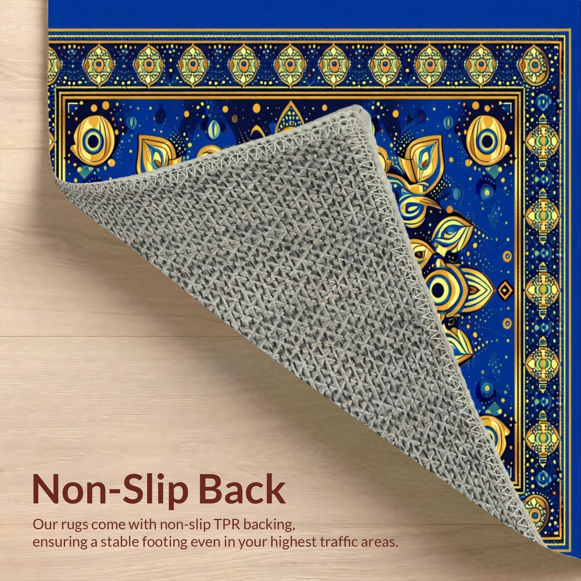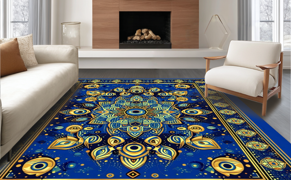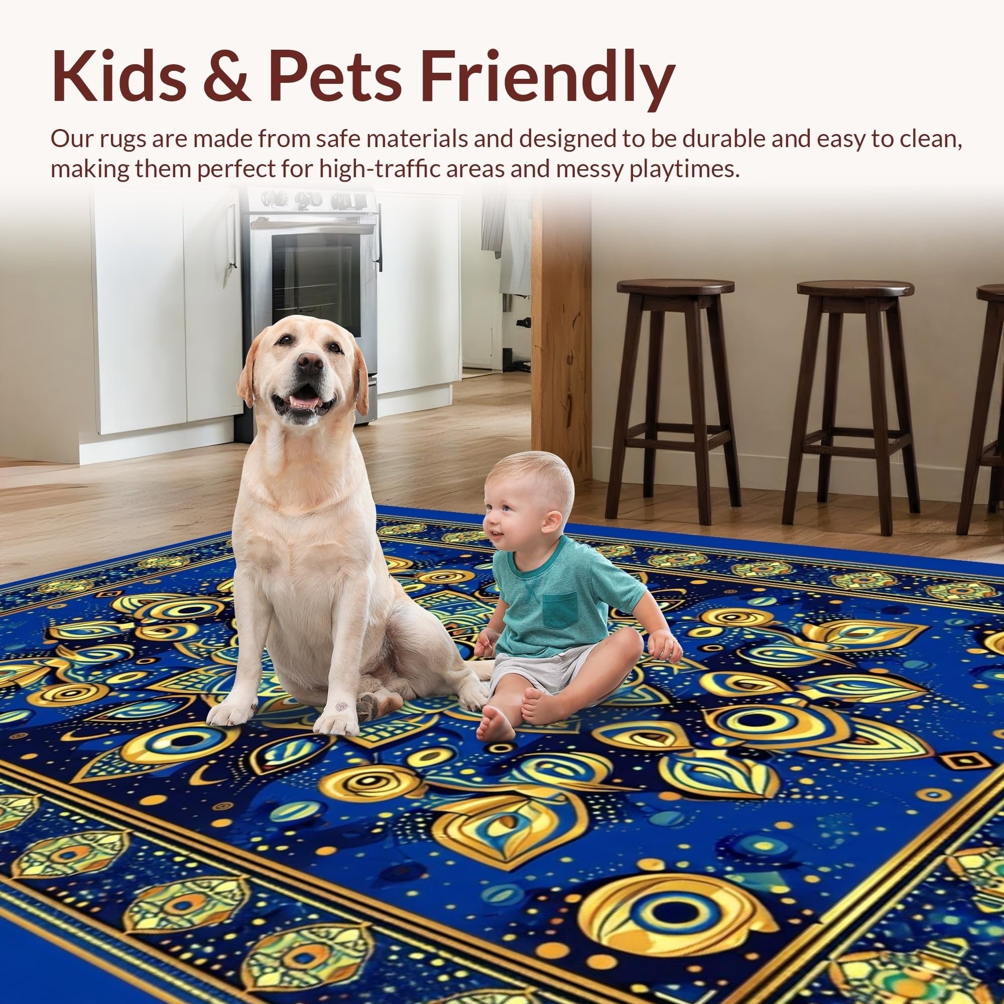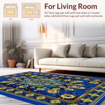 Ultra Soft Area Rug, Non Slip, Stain Resistant, Washable Area Rugs for Living Room, Bedroom, Transitional Decorative Linear Elements(Blue) Overview: