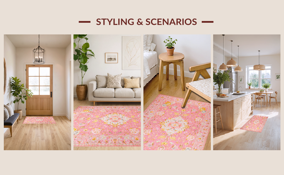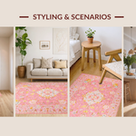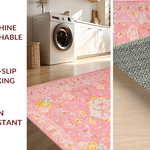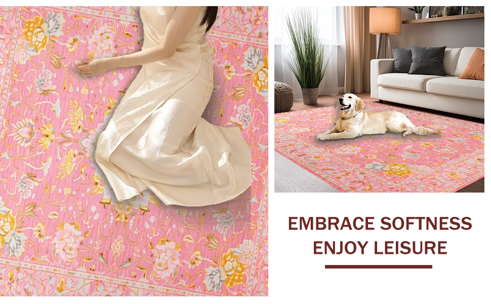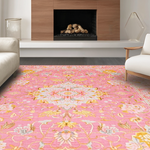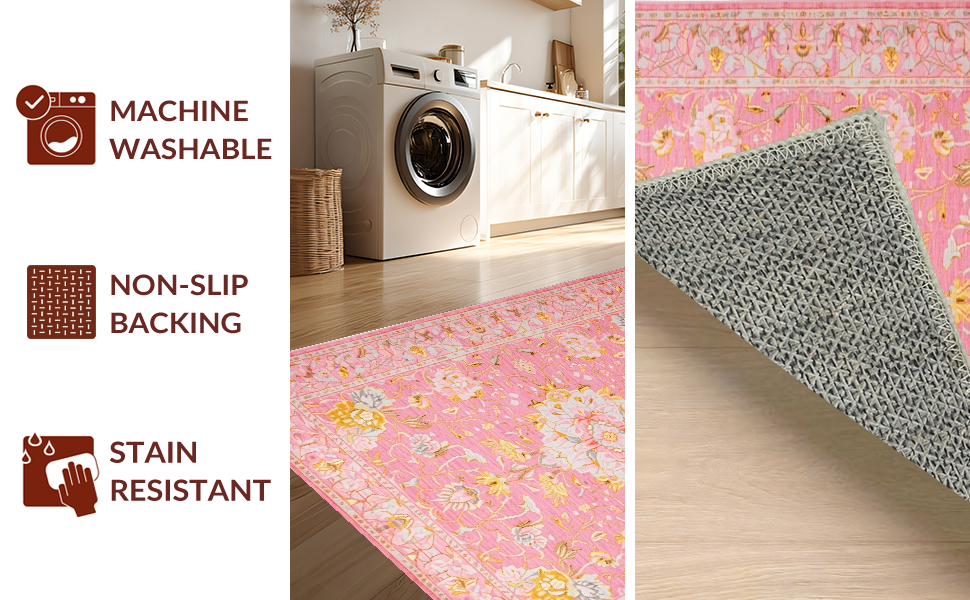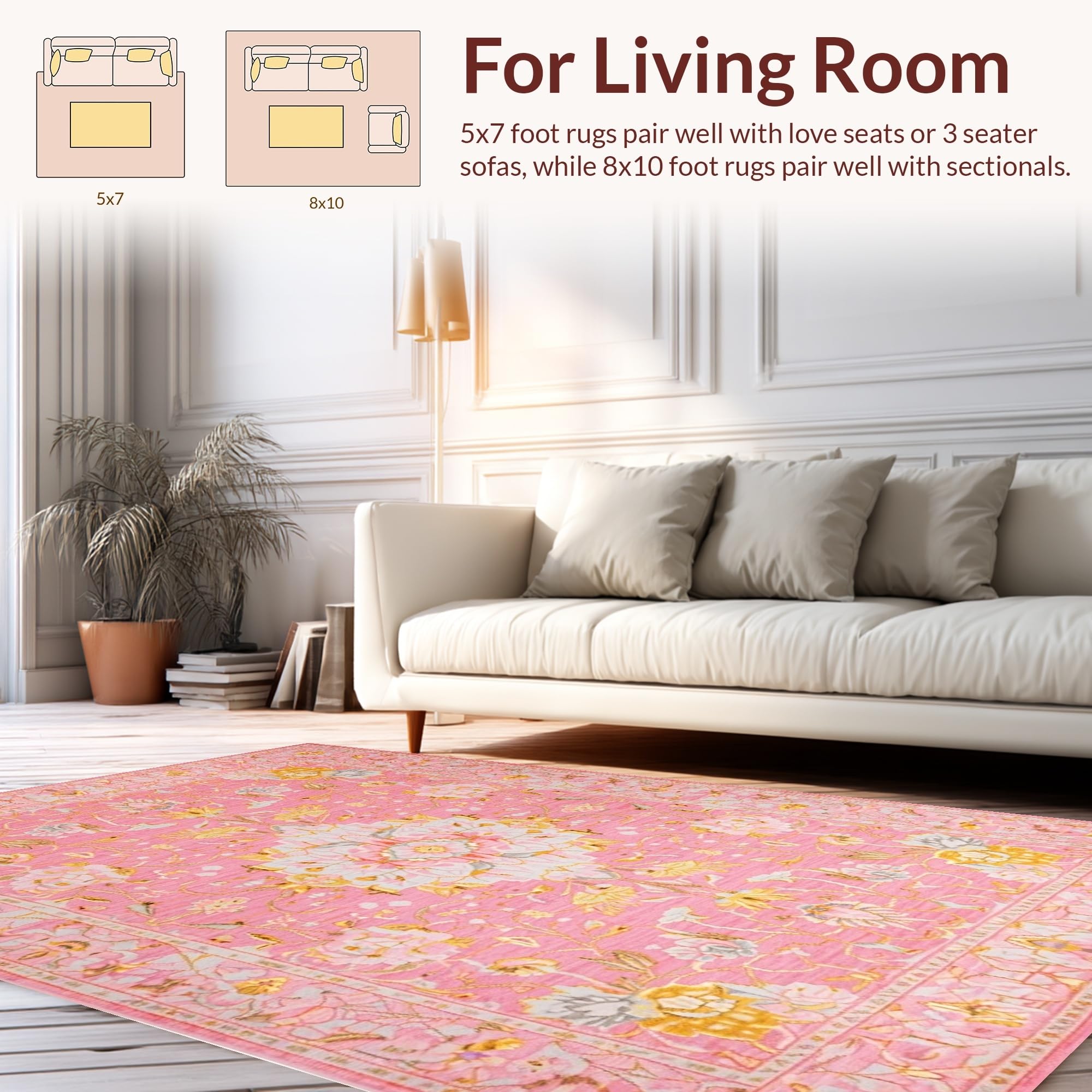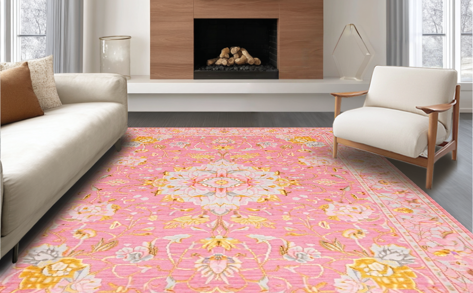 Ultra Soft Area Rug, Non Slip, Stain Resistant, Washable Area Rugs for Living Room, Bedroom, Transitional Gold Pink Elements(Pink) Overview: