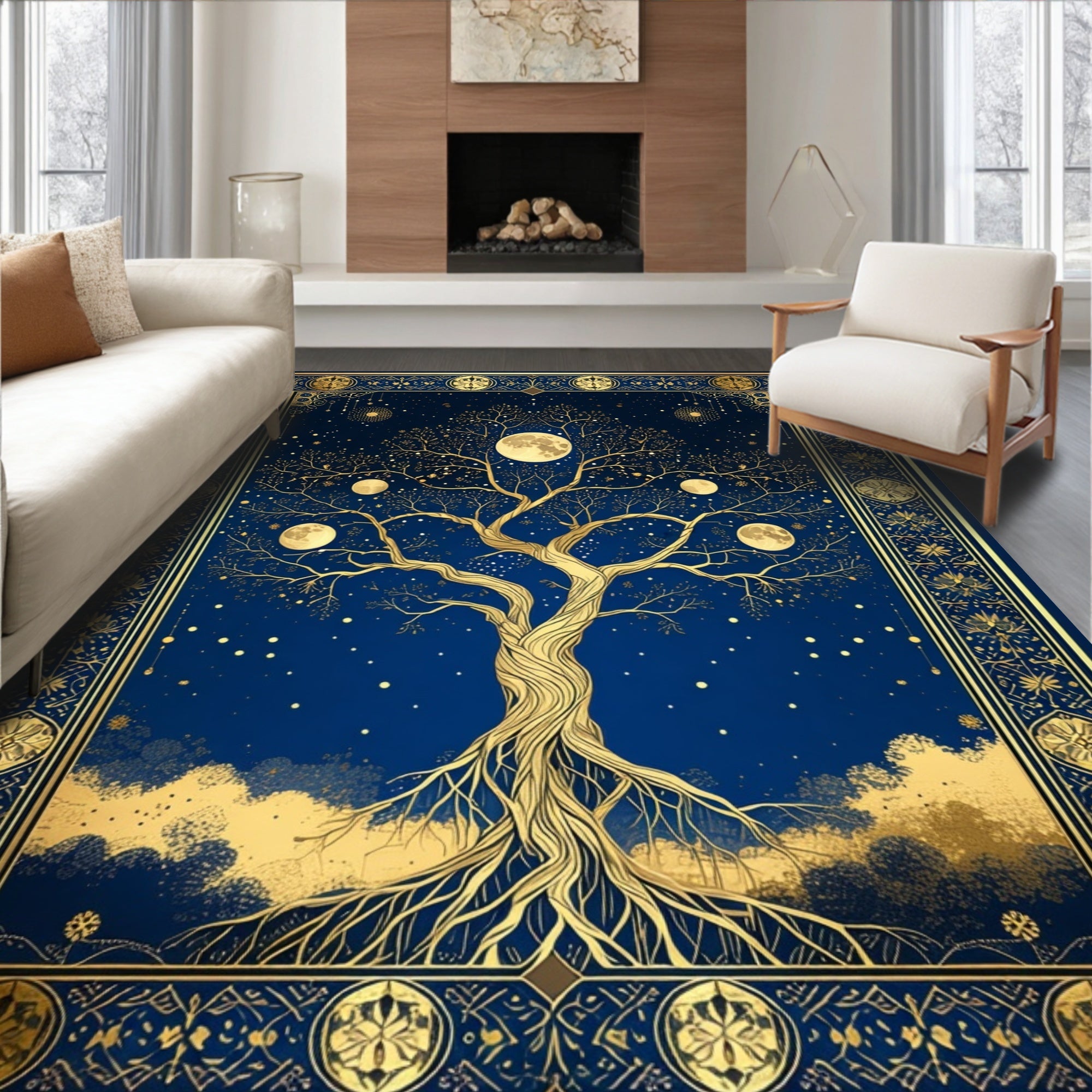 Flatwoven High Traffic Area Rug, Transitional Mystic Symbolism Style, Non Slip, Stain Resistant, Washable Area Rugs for Living Room, Bedroom (Blue) Overview: