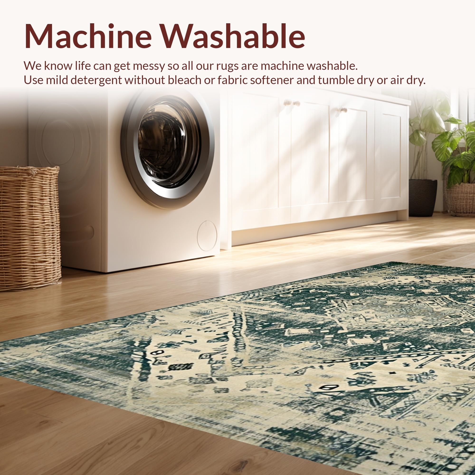 - Machine Washable: Our rugs can be easily thrown in the wash machine.