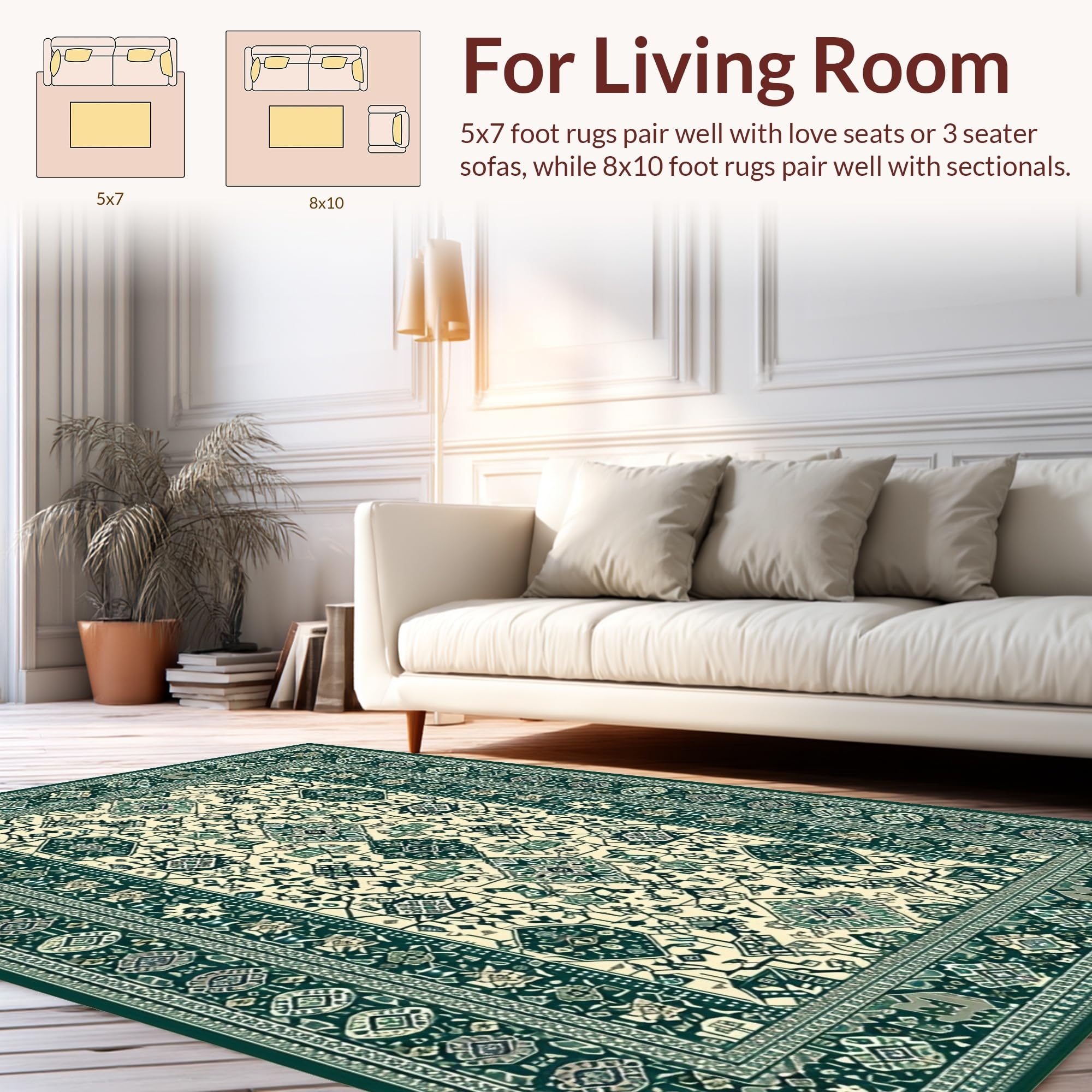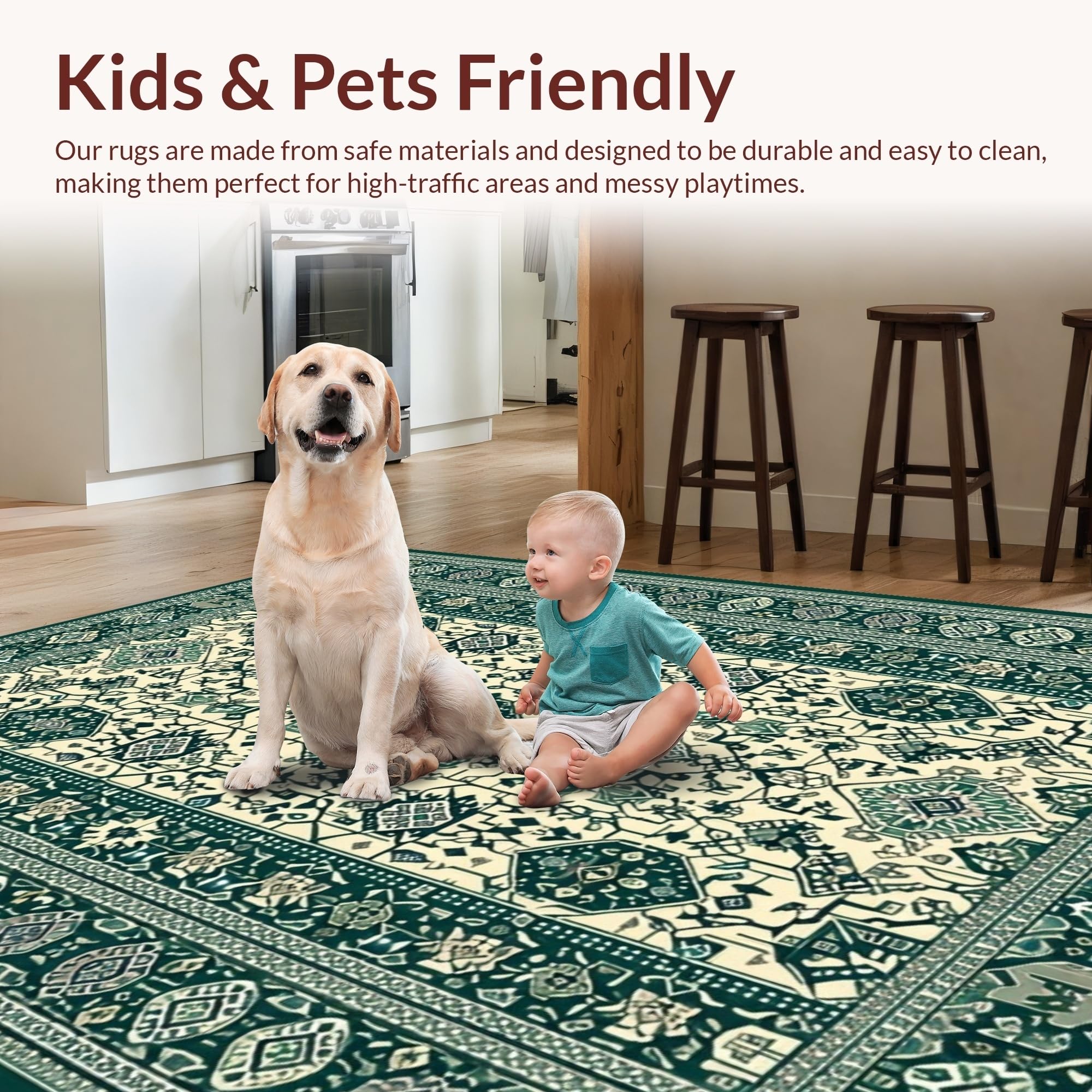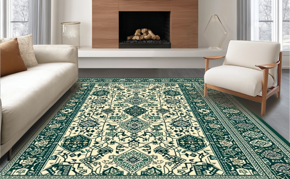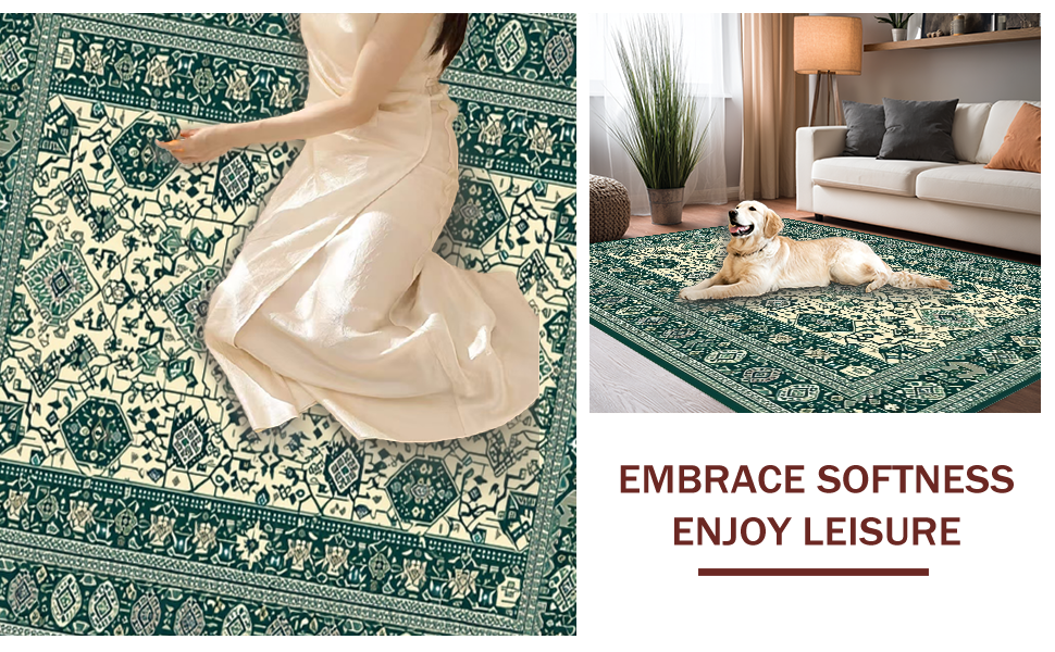 Ultra Soft Area Rug, Non Slip, Stain Resistant, Washable Area Rugs for Living Room, Bedroom, Transitional Pastel Layered Textures(Green) Overview: